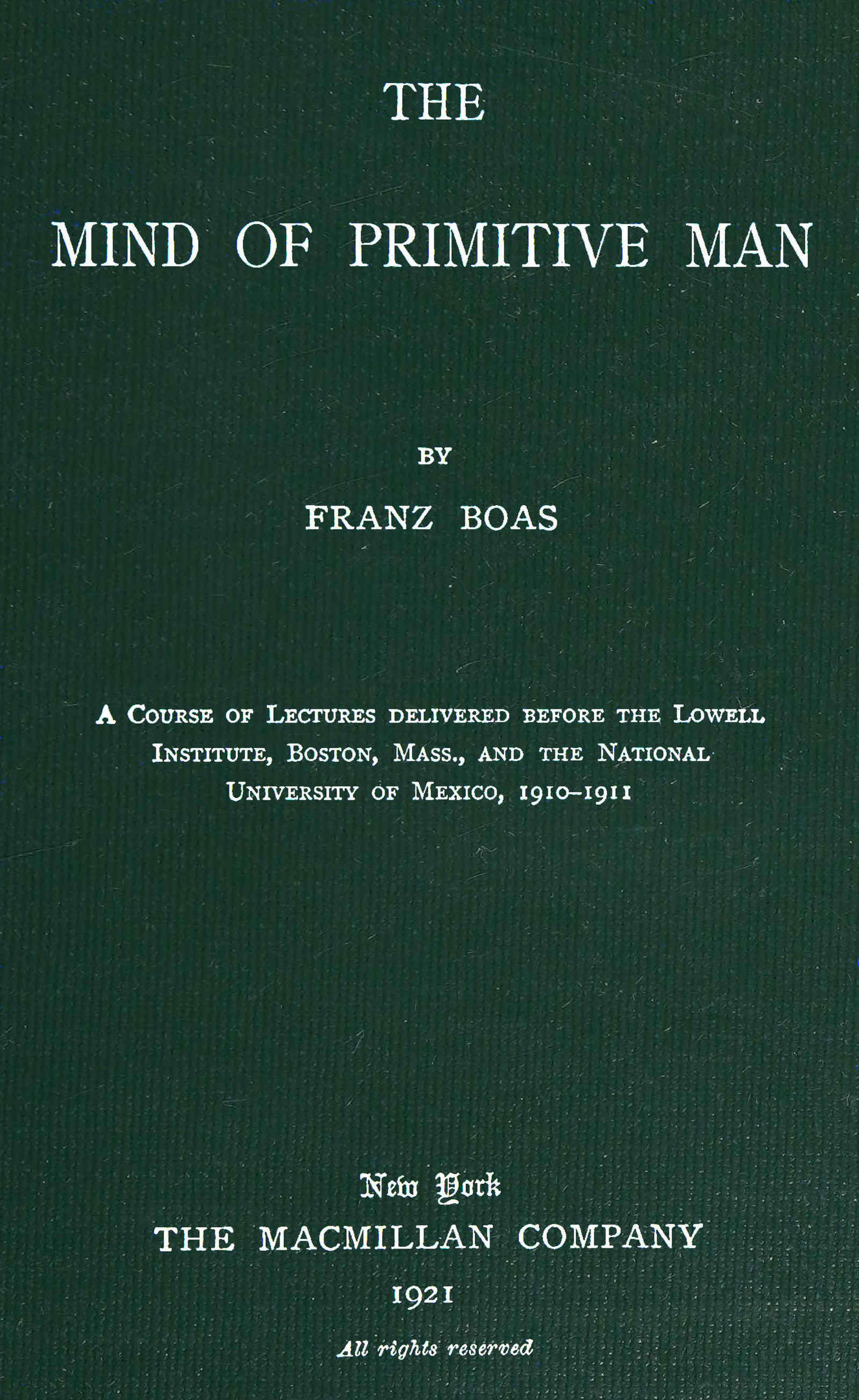 The Mind of Primitive Man (Journal of American Folk-Lore, vol. xiv [1901], pp. 1-11).