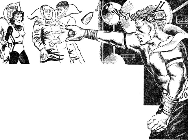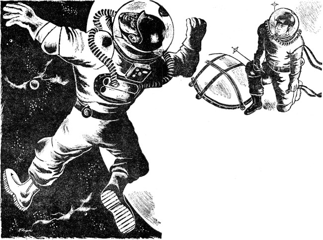 Rage came into full bloom instantly. Without an instant's thought, Britten reached out both hands, wrenched the antenna rod from Glover's back, tore his anchoring lines from their snaps, and pushed the struggling body out into space, where it soon dwindled away into a tiny speck.