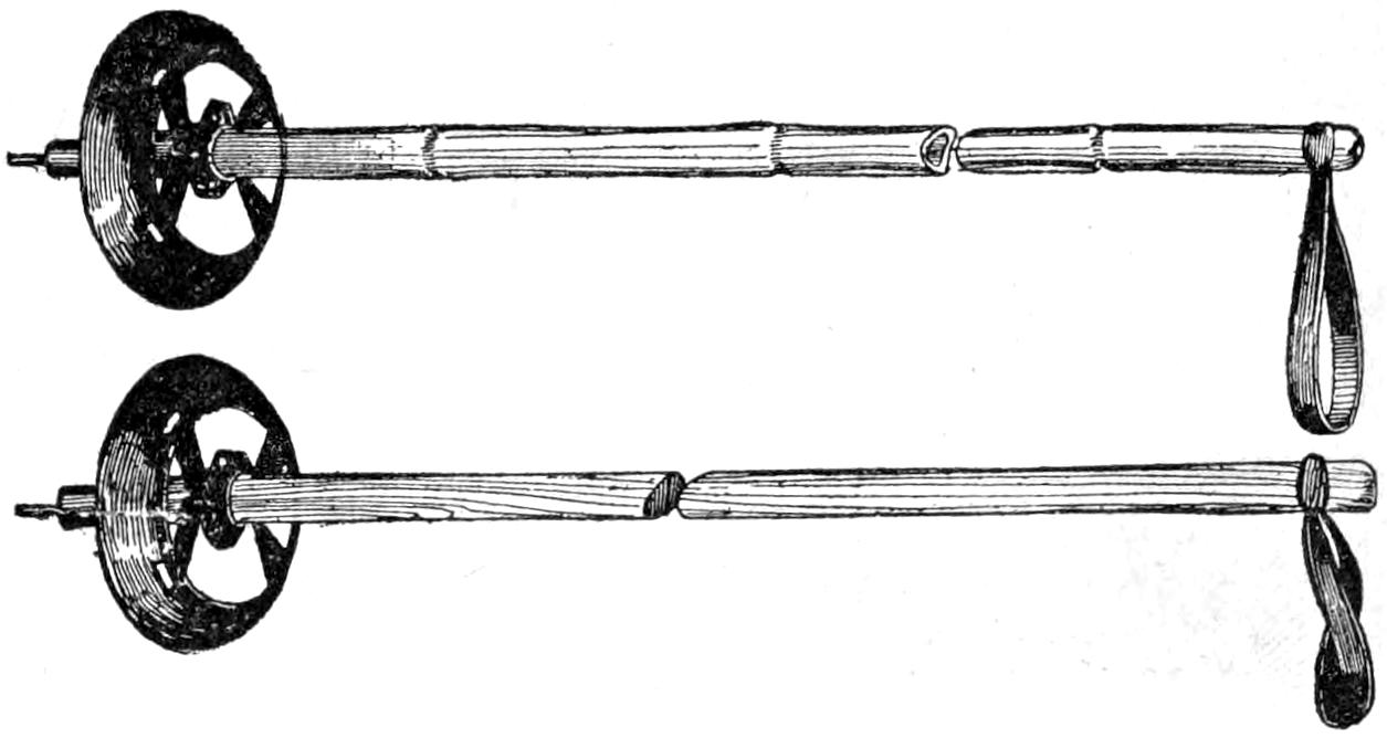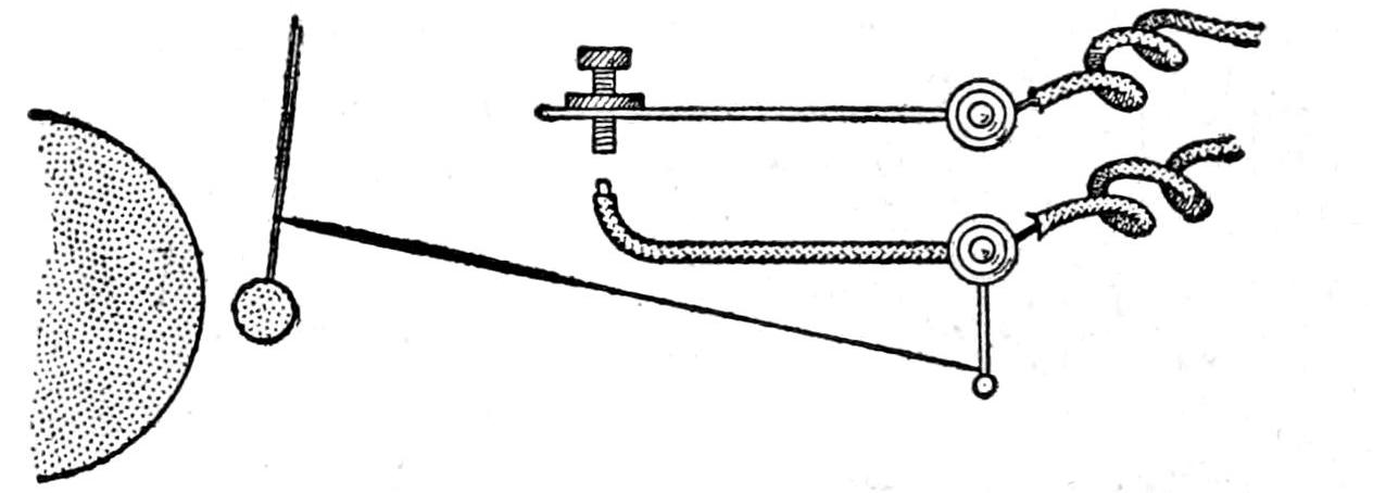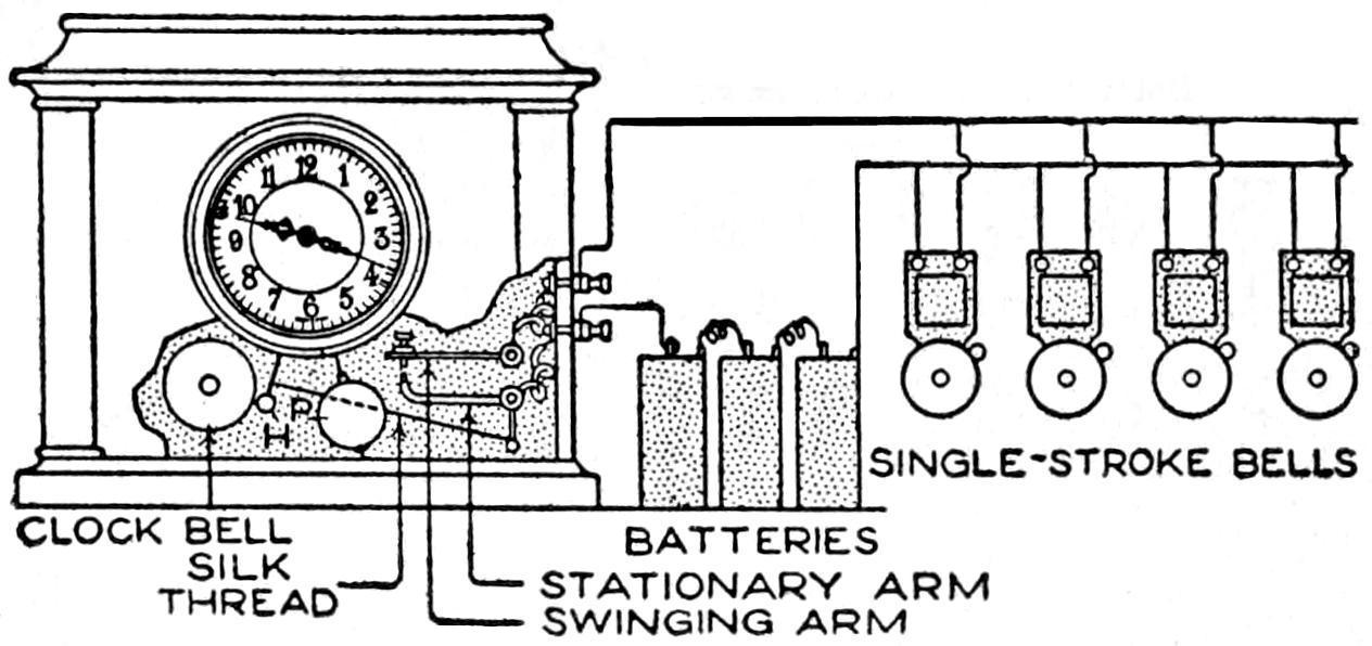 In making this useful toy, first, a wheel from an old baby carriage was stripped of the tire; then two laths are fastened together at one end, and the wheel inserted between them, at the other end, and held by a bolt. A strong cord was passed around the groove in the wheel, and around a spool, nailed so as to turn on the side of the lath when the wheel is rotated. Driven into the rim of the spool are three nails, which strike against the old alarm-clock bell, fastened as indicated.—W. F. MacGregor, Toronto, Can.