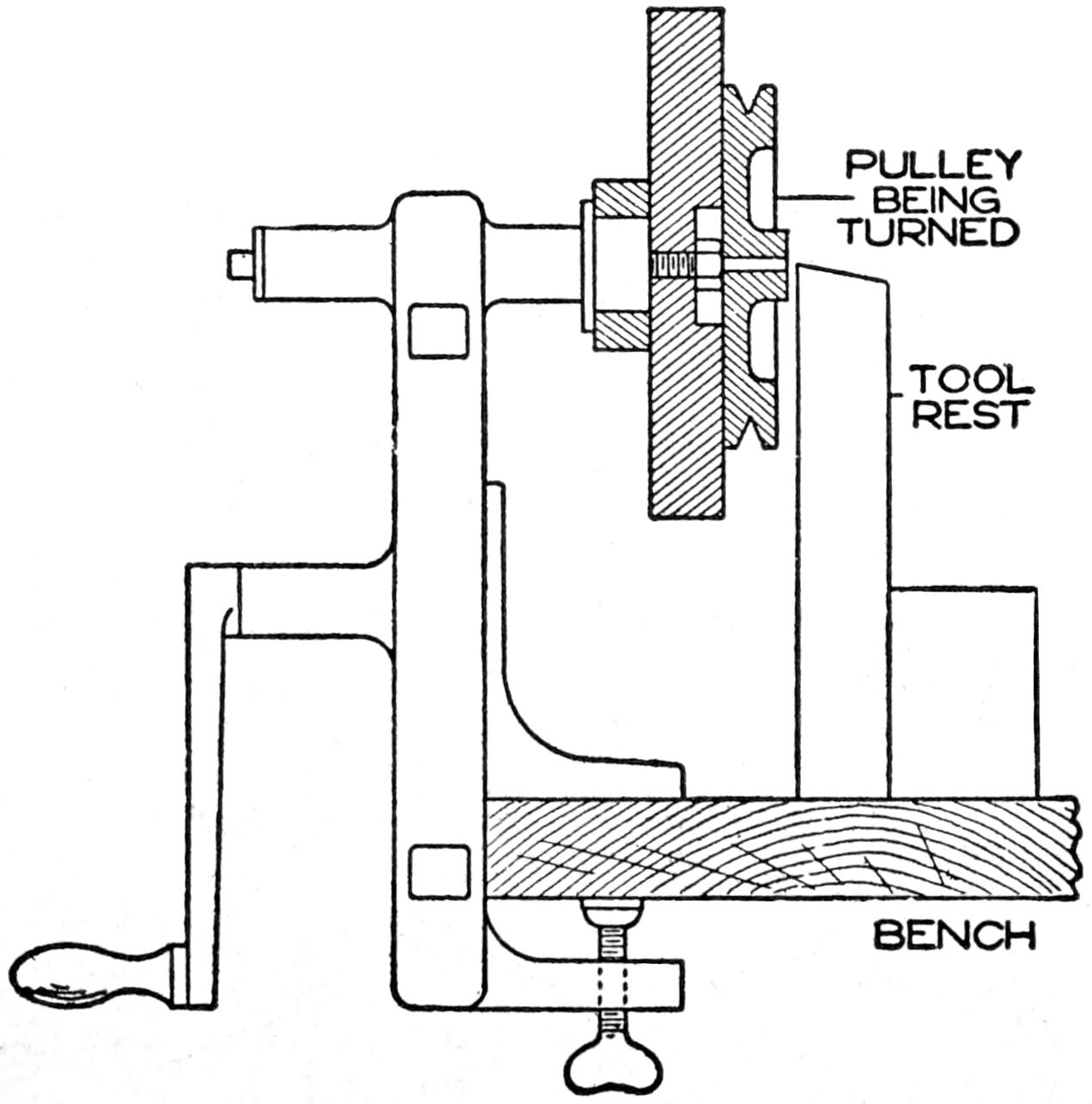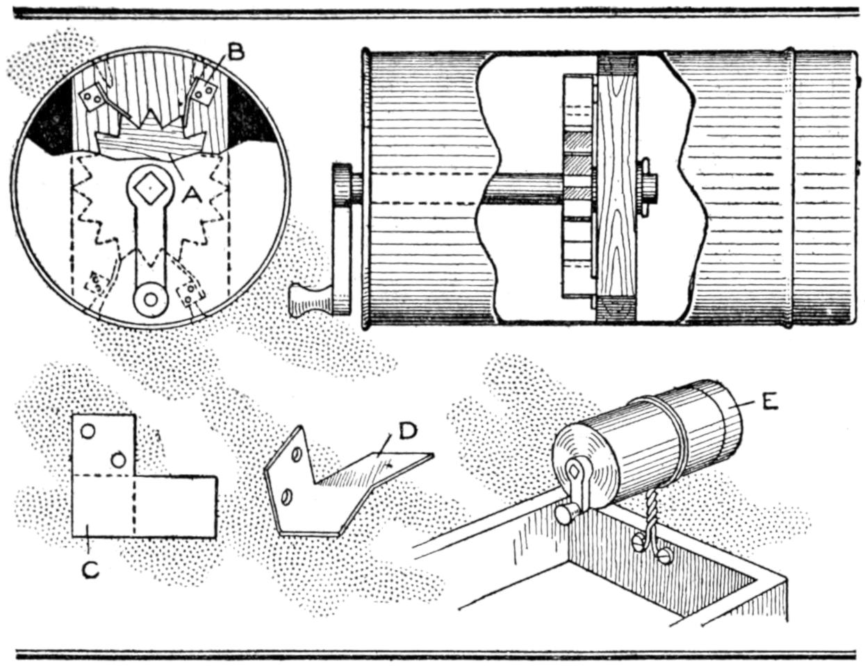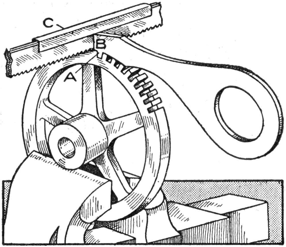 A handle fixed on the driving wheel, as shown at C, makes turning it easier. After sharpening, replace the gears, clean the bearings thoroughly, and replace the driving wheels.—Ed. M. Hawes, Everett, Wash.