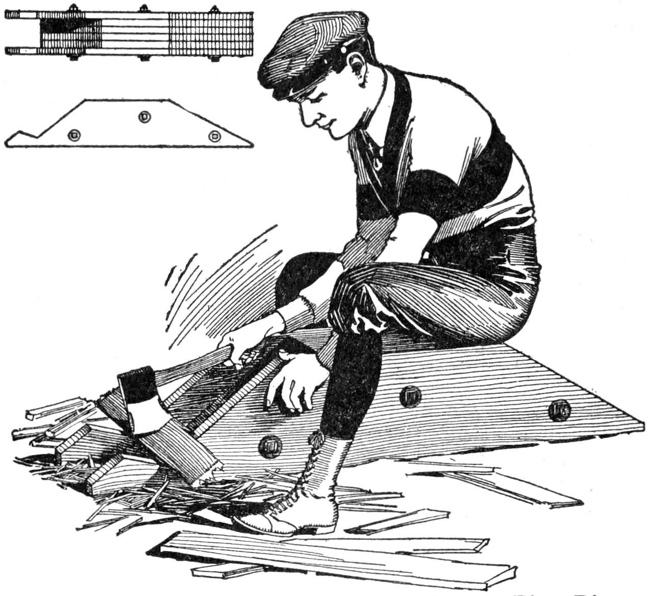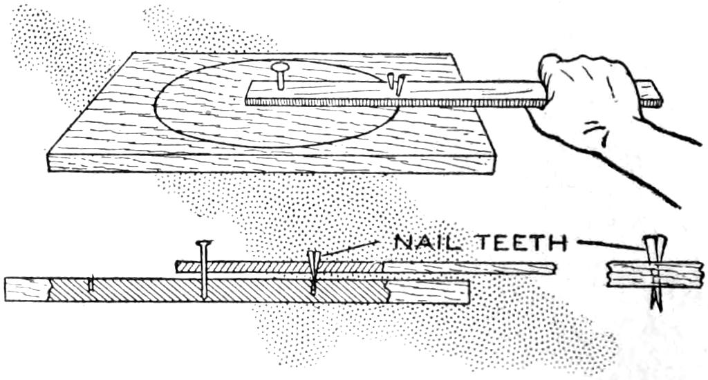 Most persons know what a difficult job it is to crack hickory nuts, unless provided with a suitable hammer, or other tool, for the purpose. When nut hunting, such tools are usually not at hand, and a method used by an old backwoodsman will be of interest. First he cut a hickory limb, about 2 in. thick and 3 ft. long. In the center of the limb, he cut a square notch, about halfway through, and just large enough to admit a nut. Then placing one end of the limb on the ground, the other end held in the left hand, he placed a nut in the notch, and bent the limb slightly. This brought the edges of the notch closer together, and cracked the nut neatly.—C. M. Vaiden, Portland, Ore.