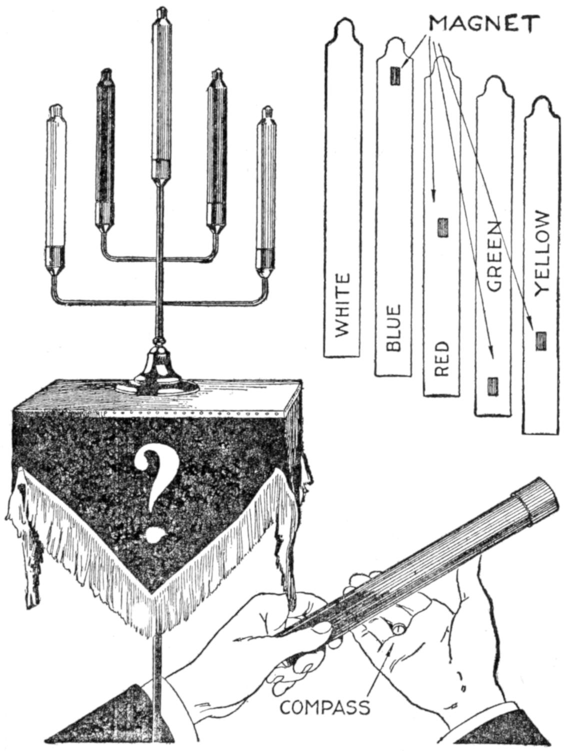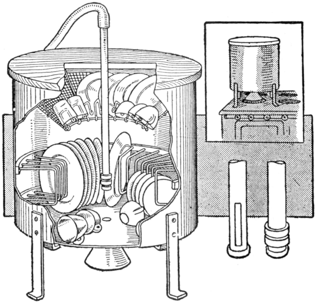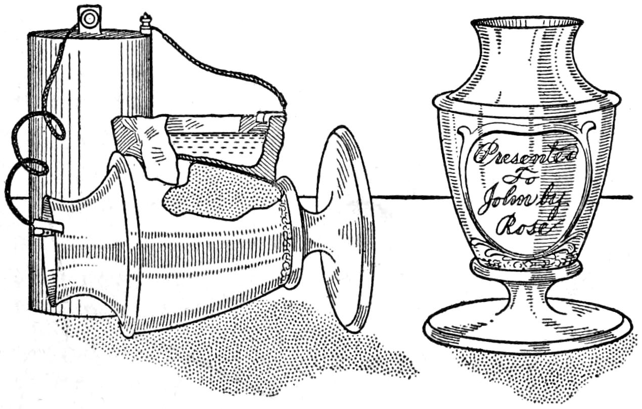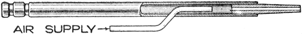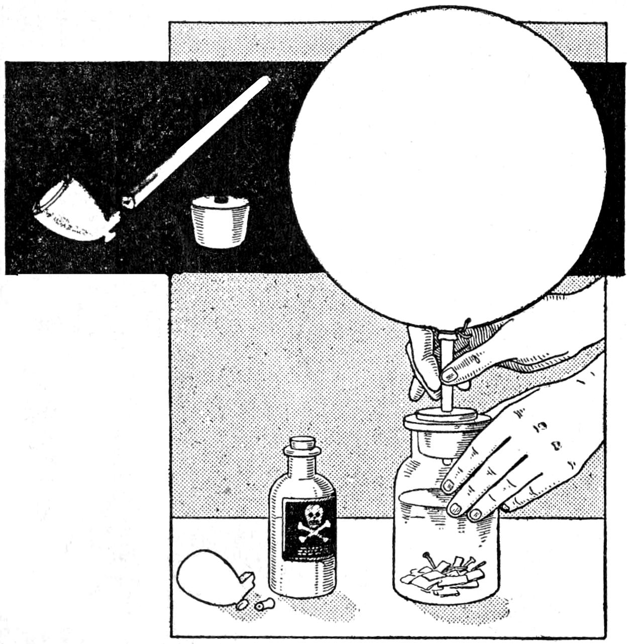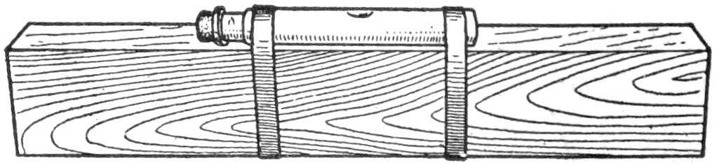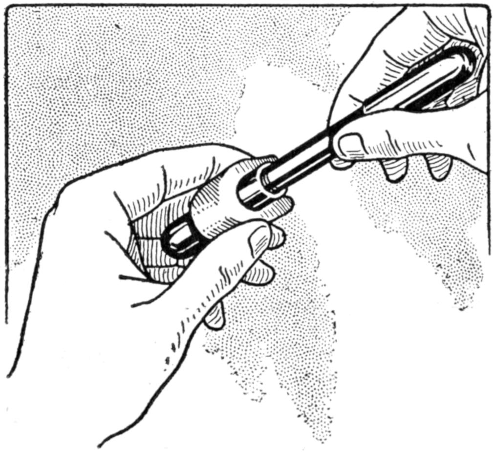 Atomizers are sometimes provided with delivery tubes the lower ends of which are ¹⁄₄ in. or more above the bottom of the reservoir, thus rendering useless considerable of the spraying liquid. To overcome this waste, in the case of expensive sprays, a small homeopathic vial was filled with the liquid from the bottom of the reservoir, and lowered into the bottle, as shown. The delivery tube of the atomizer was[451] set into the vial, and the cap screwed on. By this means almost every drop of the spraying fluid was utilized.—Carl L. Hartshorn, West Haven, Conn.