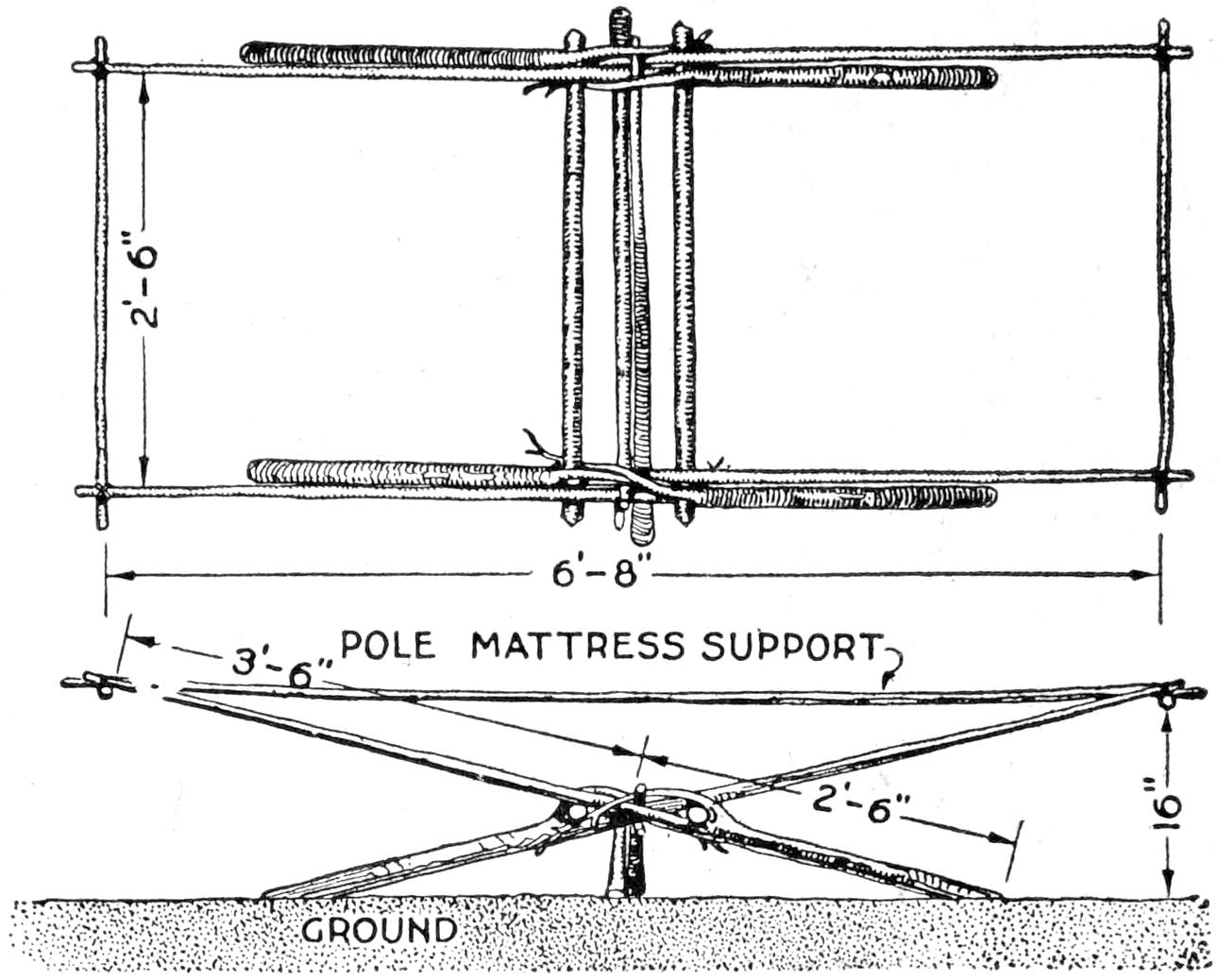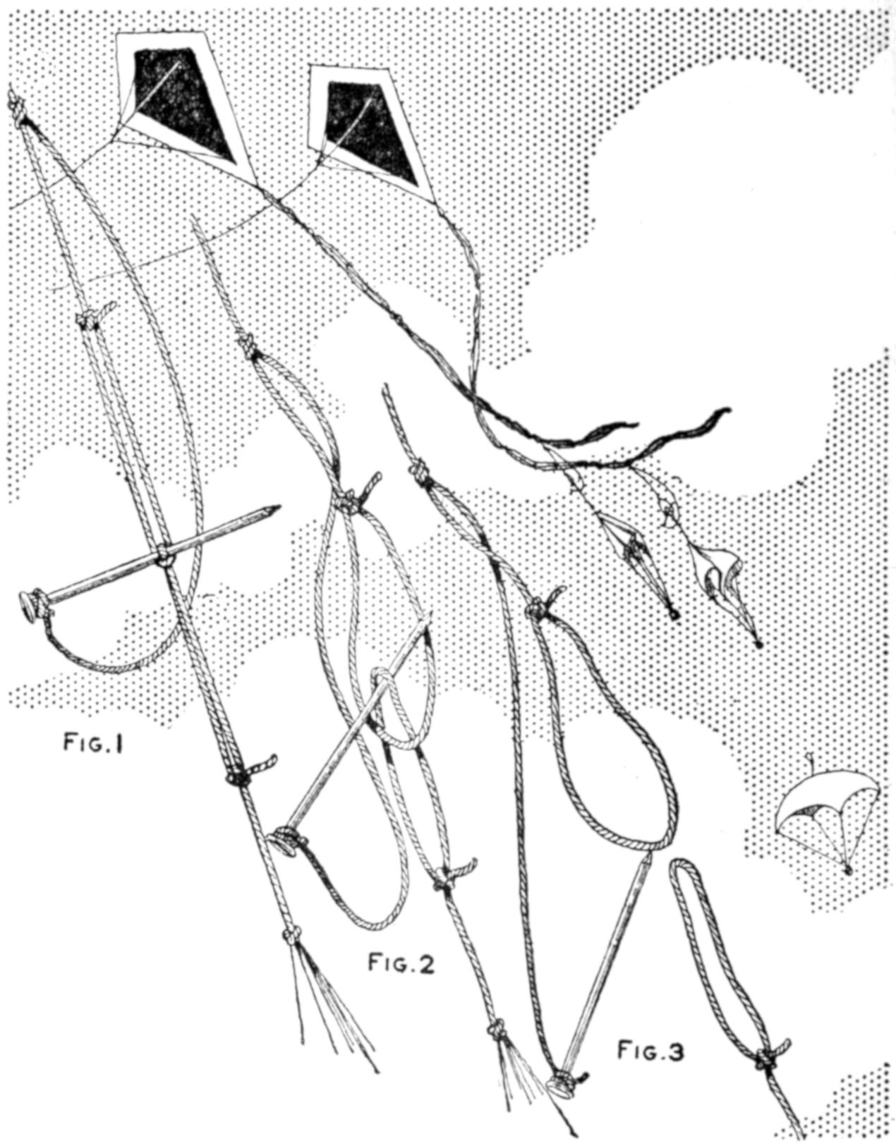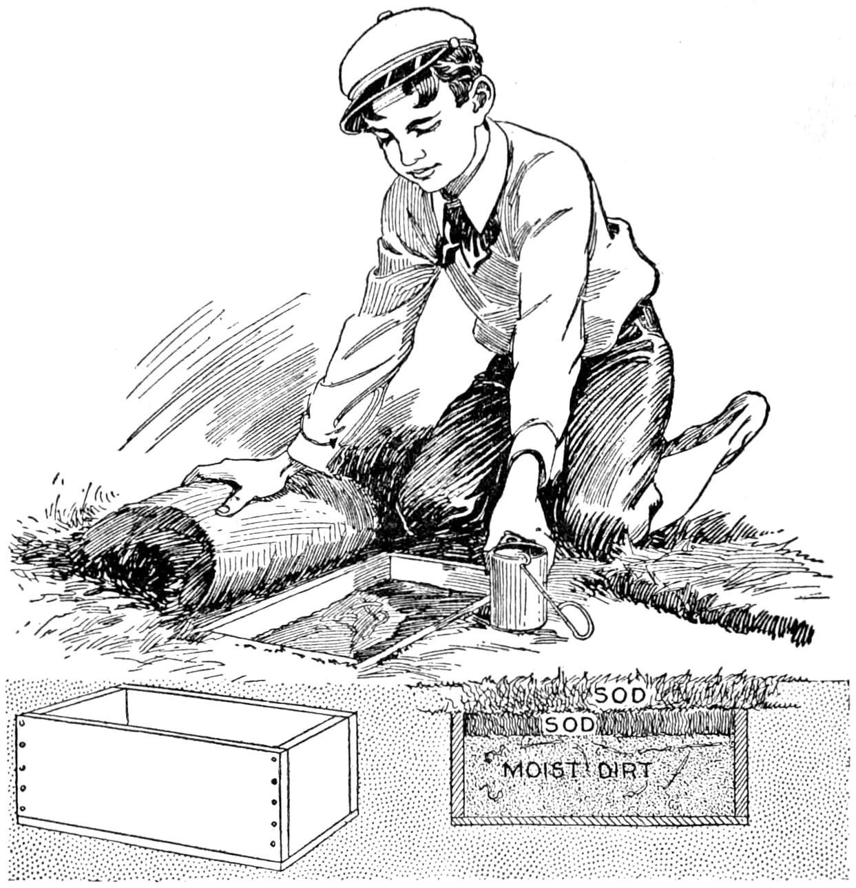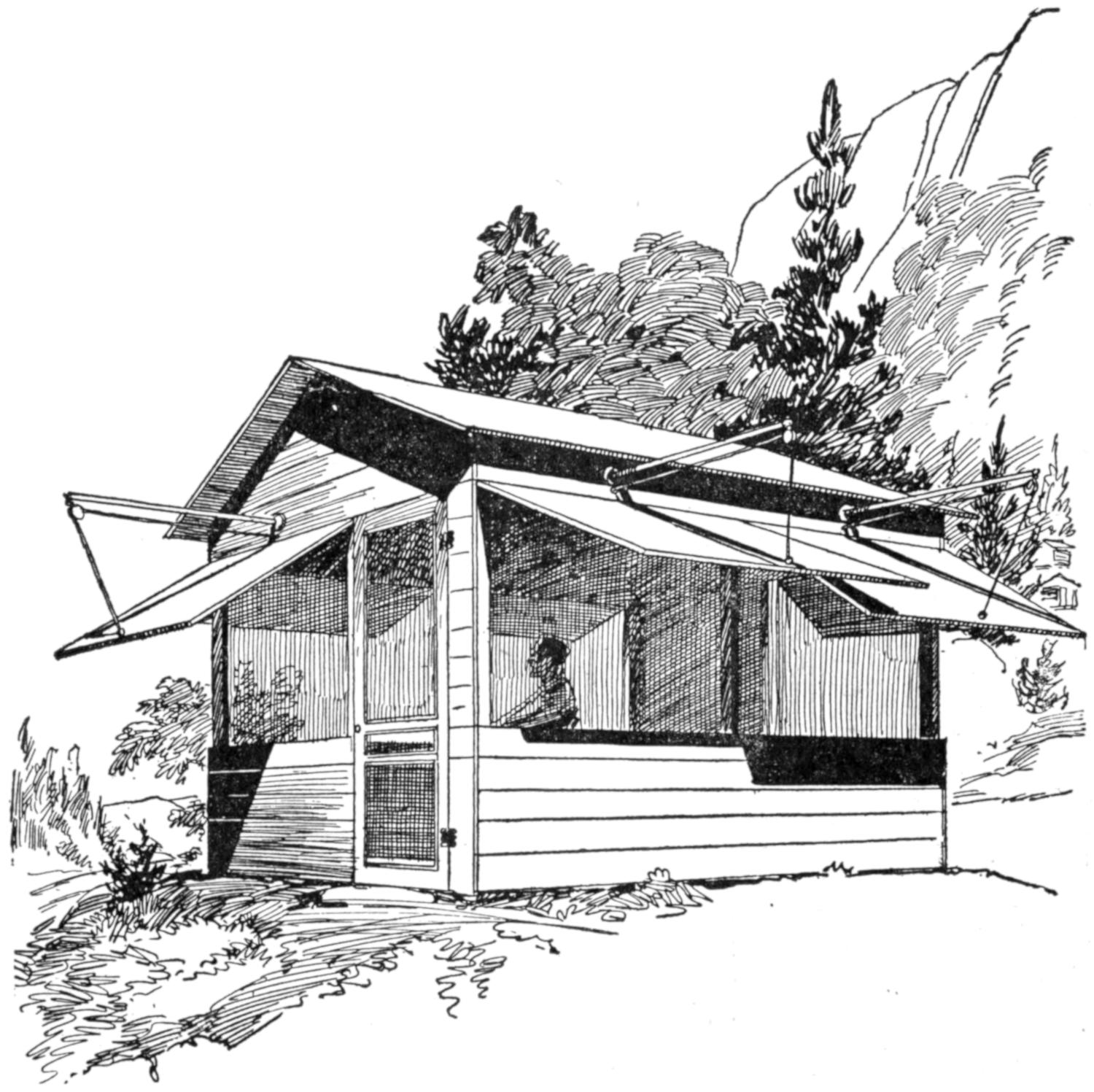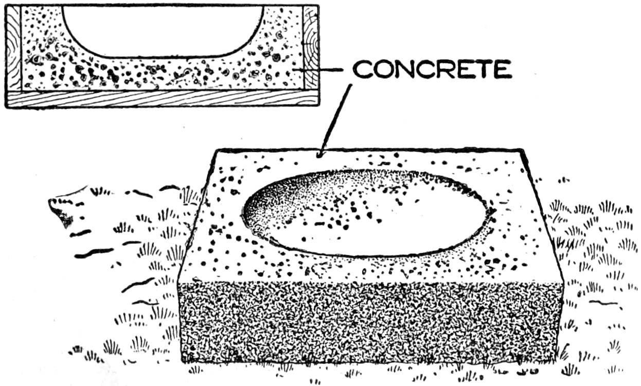 While conducting a boys’ camp in summer we experienced a severe sleet storm. Our tents were not equipped with stoves and I faced a double problem: to keep the boys warm and to keep them contented. The difficulty was solved by having them construct emergency camp stoves, as shown, using iron stovepipe, and other material at hand. One length of pipe is laid under the side of the tent about 4 in. in the ground, as in Fig. 1. An elbow mounted in sod connects with the chimney. A stone at the front of the stove regulates the draft, and stones placed upon the pipe hold the heat. The arrangement diagrammed in Fig. 2 is built with one length of pipe or a stone conduit. A hole is dug into the ground, about 10 in. deep. Over this is placed a pan, and an opening is made at the front for the fuel. The chimney is made of stones and sticks picked up around the camp, and plastered with mud. Coffee may be boiled or small cooking done on this stove.—William H. Leach, Alden, N. Y.
