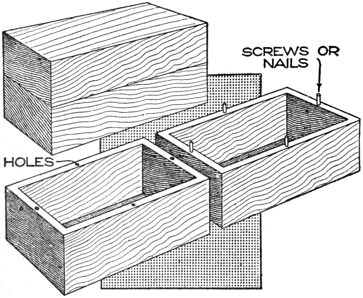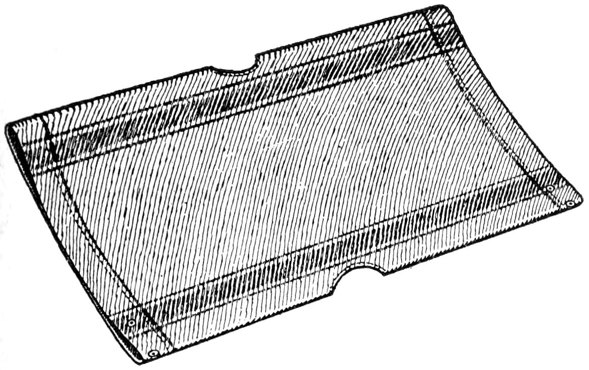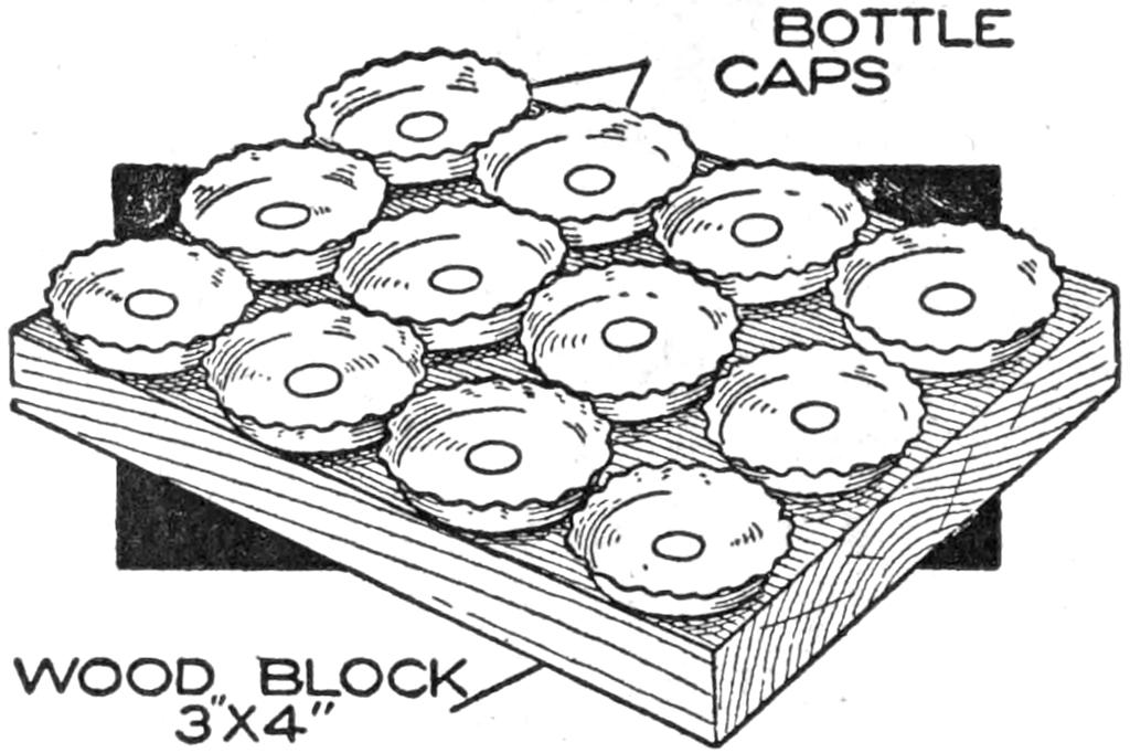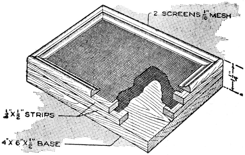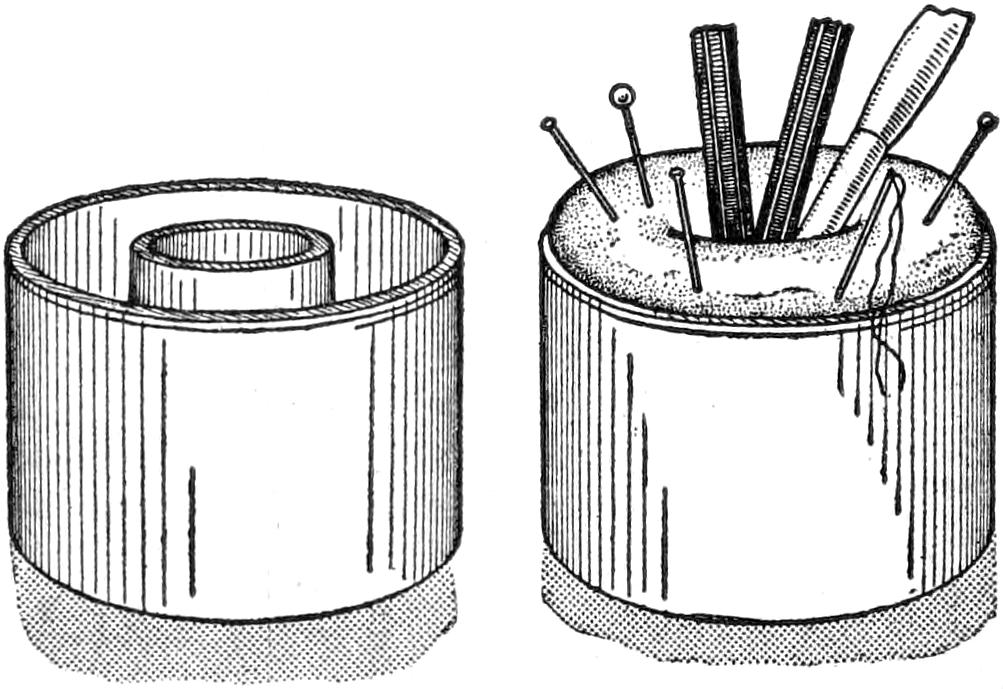 Pins placed in a pincushion like that shown automatically arrange themselves vertically, head up, so that they may be removed handily when needed. The pincushion is durable, and a useful device for the desk. It is made by binding two layers of ordinary screen wire between wooden frames, mounted on a wooden base, ¹⁄₄ in. thick, 2¹⁄₂ in. wide, and 3¹⁄₂ in. long. The frame can be finished neatly, and made of hard wood to match other desk fittings.—D. J. McKean, San Francisco, Calif.