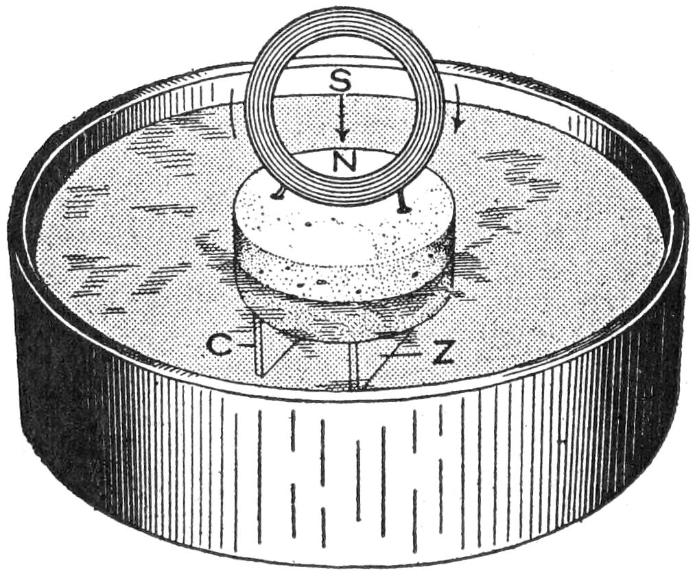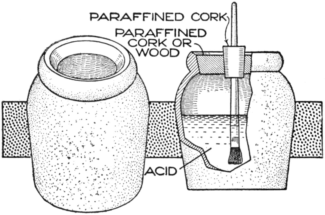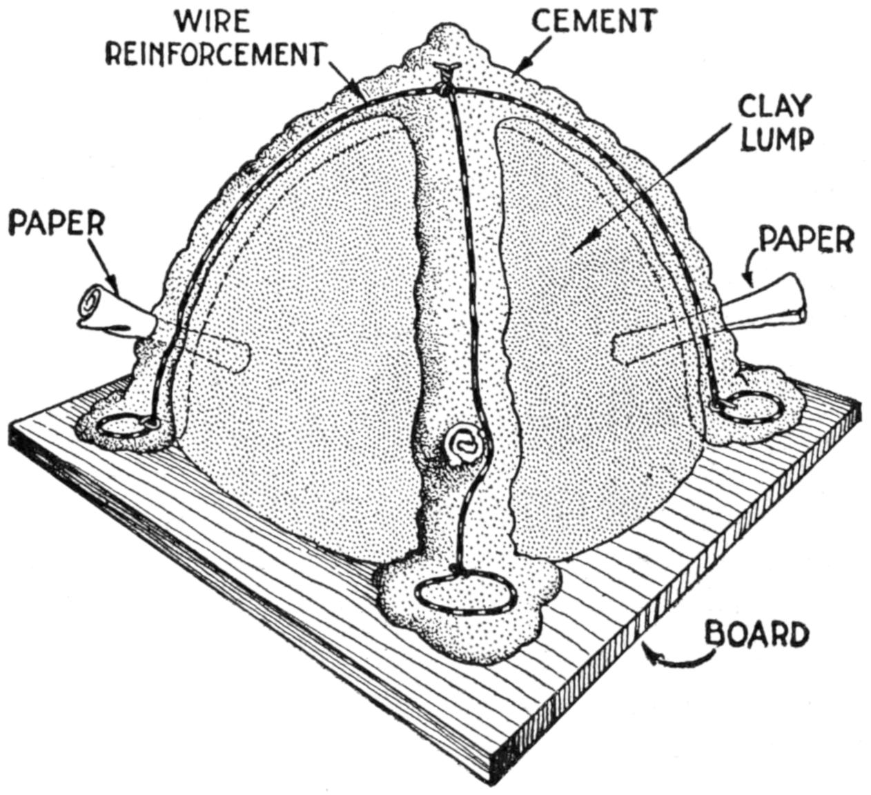 Also make a small wooden plug, and set it in the center, its point touching the pattern, and pour the plaster around it. When the mold is dry remove this plug, thus forming the sprue hole, through which the molten lead is poured into the mold.
