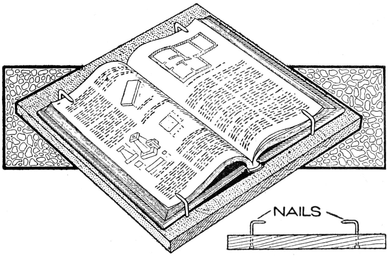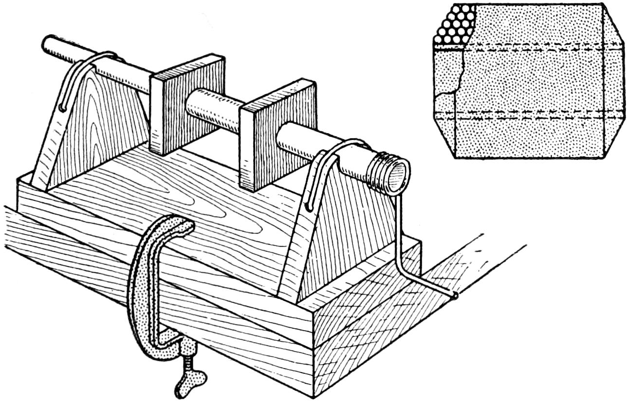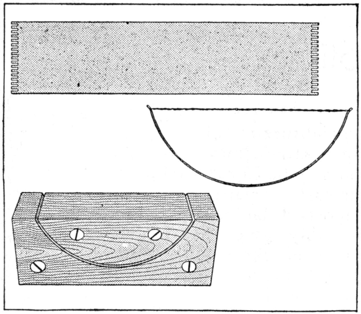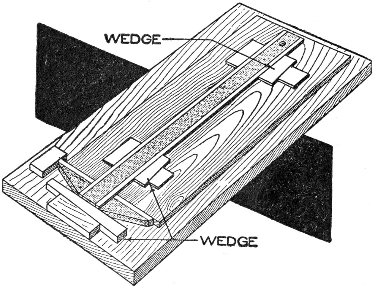 ¶A block of soft rubber, 1¹⁄₂ by 3 by 5 in., is useful as a pad for sandpaper in smoothing curved surfaces.