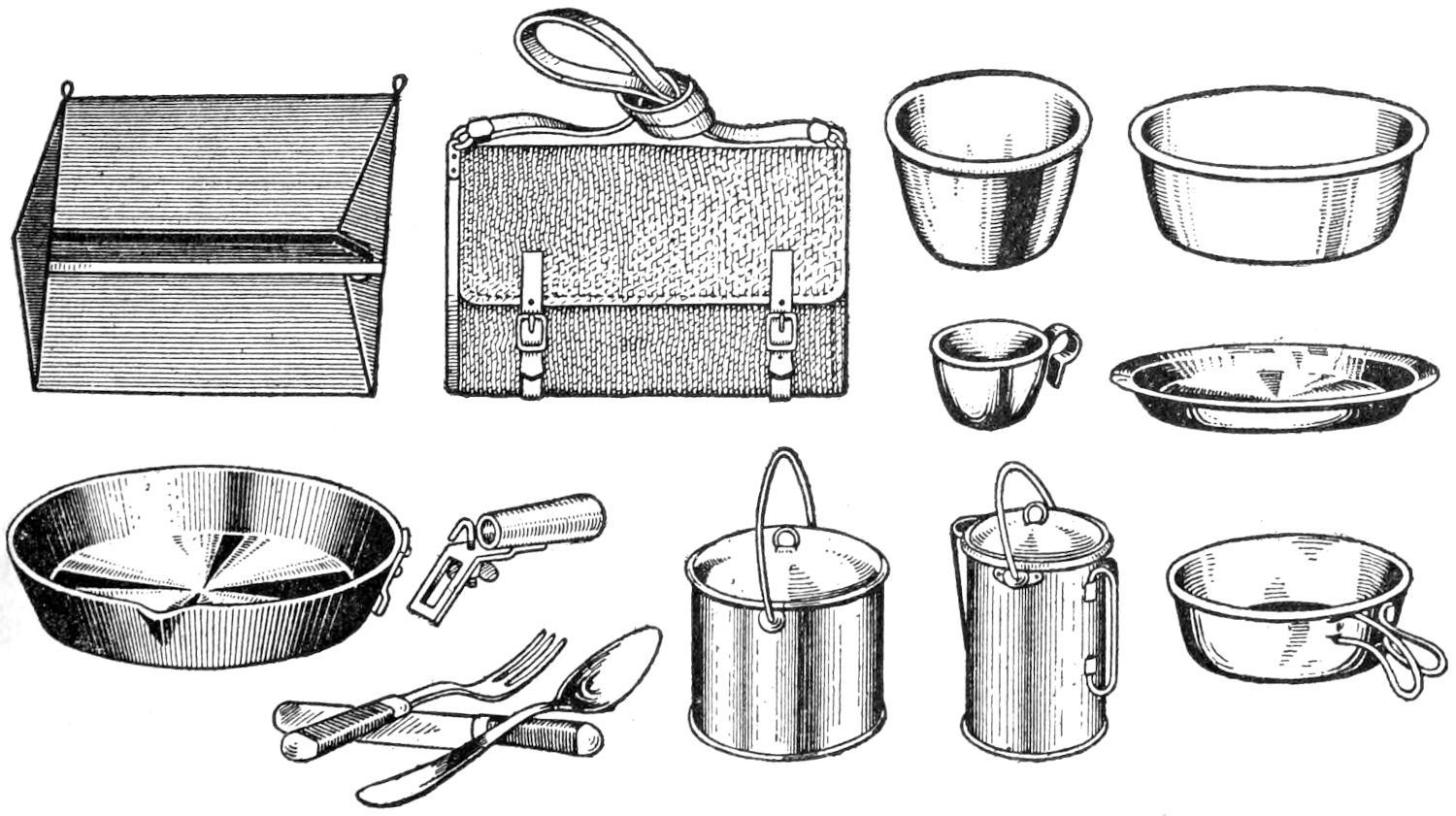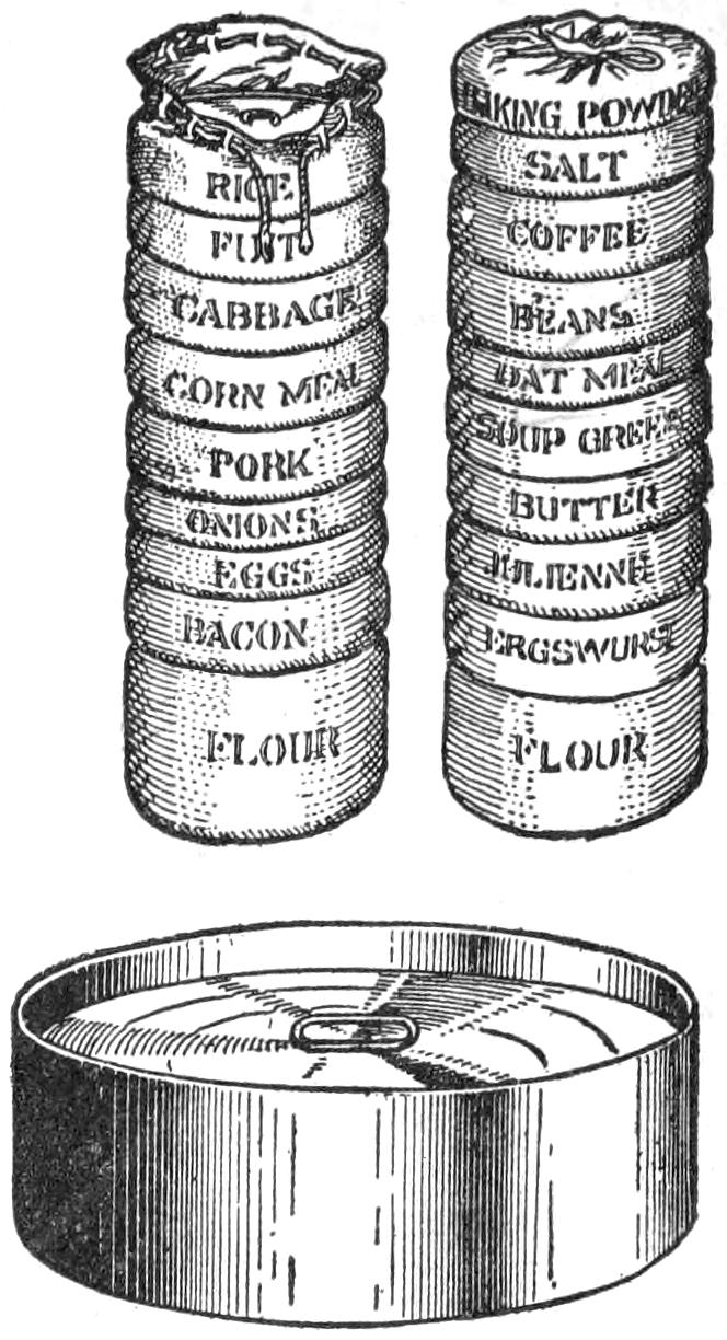 Page 113, illustration top right (Food Bags): Fut and Ergswurst may be errors for Fat and Erbswurst (pea sausage).