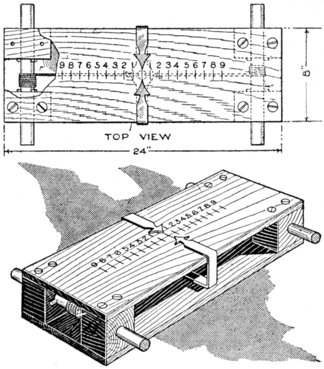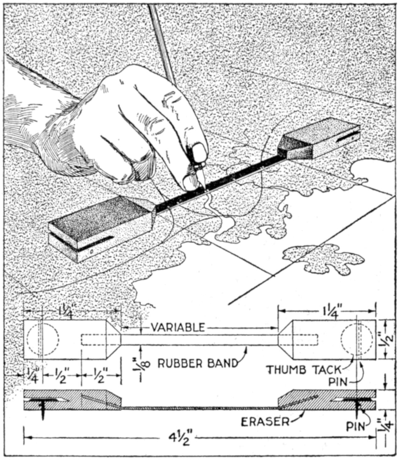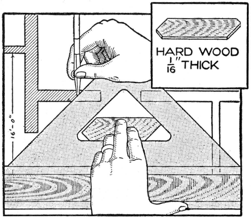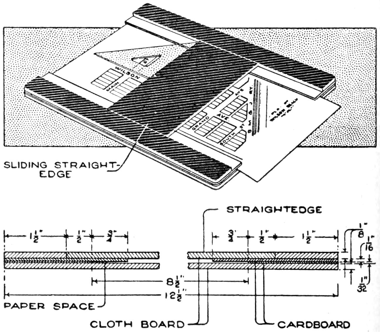¶A table of decimal equivalents, or other information can be mounted in shellac, at an angle to be easily read, at the head of a T-square, and is quite convenient.