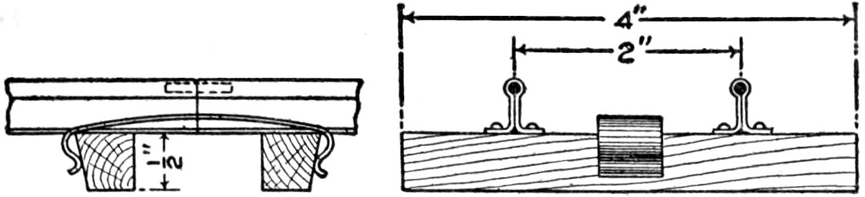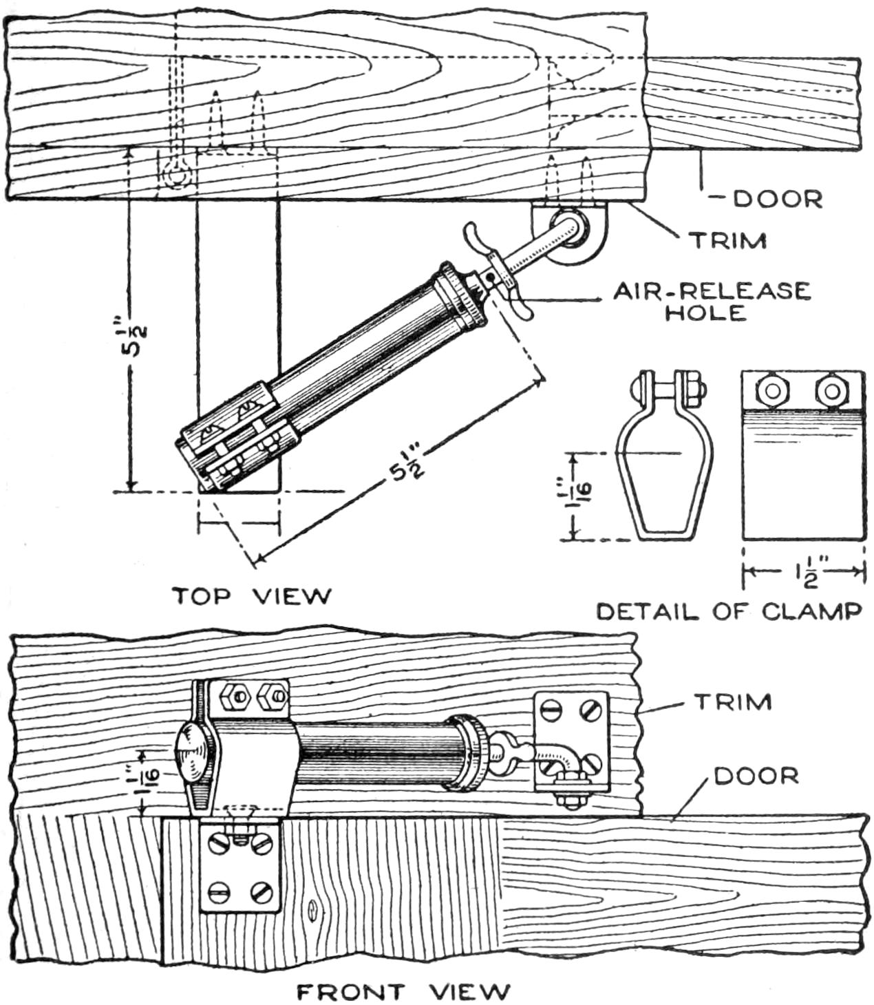 Frequently, in placing a coil spring on a screen or other door, the casing is flush with the door, and it is difficult to give the spring the desired leverage. If it is attached to the casing directly, the surface is marred by the rubbing of the spring. A good method is to set a small iron bracket, either homemade of strap iron or one of the commercial type, on the casing and attach the end of the spring to the bracket. This prevents the spring from rubbing on the door and casing, and gives it freedom of action.—Harry L. Dixon, Chicago, Ill.