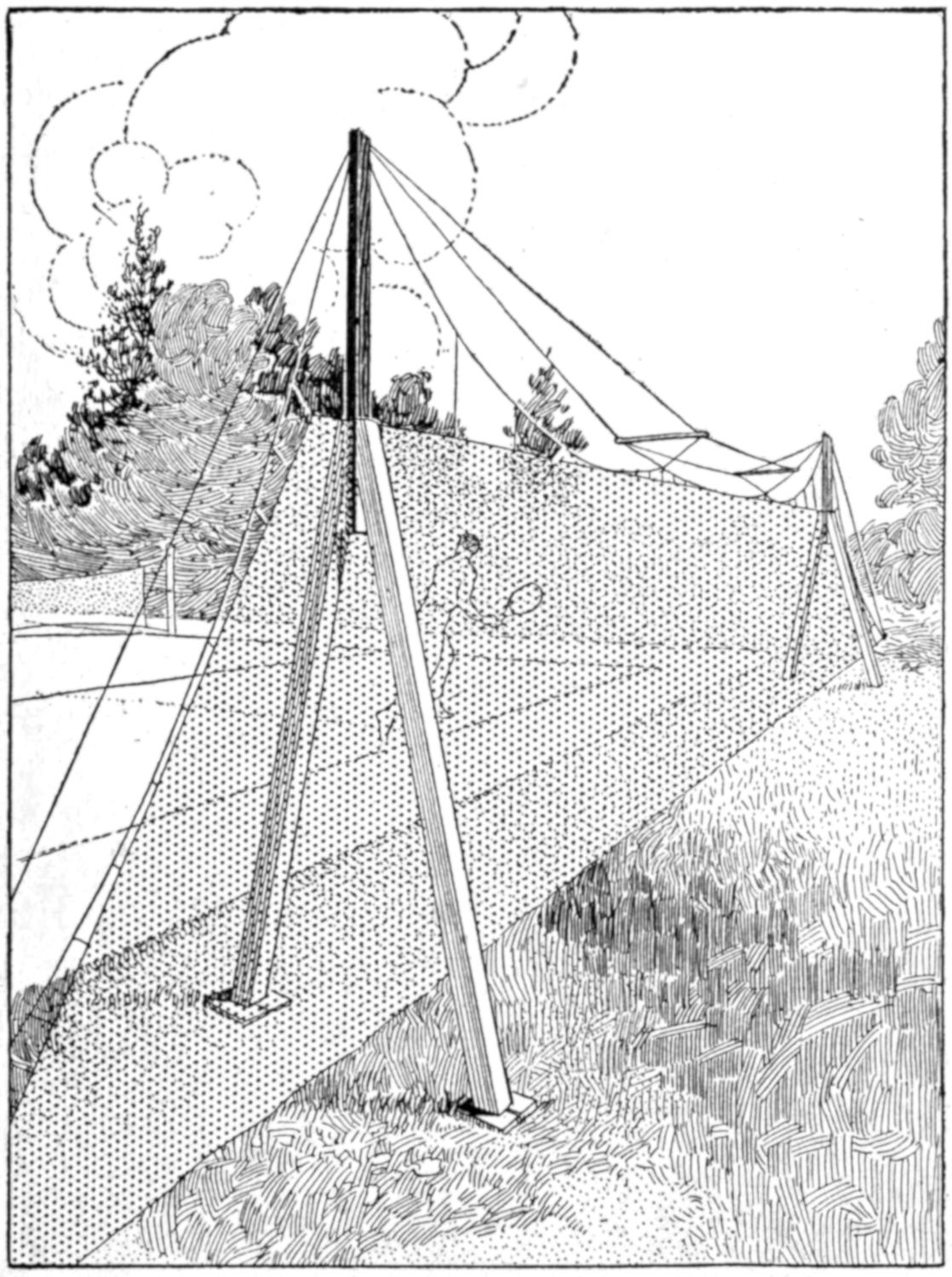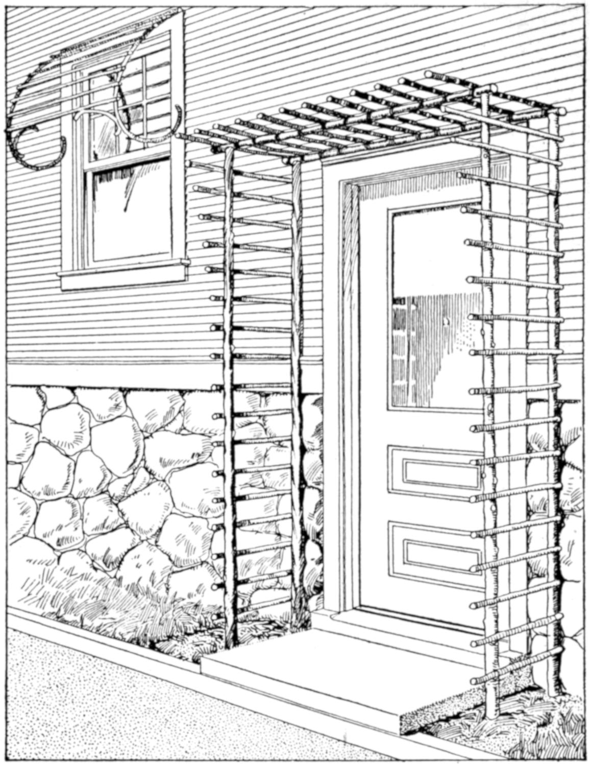 A desirable vine often has not the natural ability for clinging to stone, and other walls, and a suitable aid must be provided to support it. Fastening a wire trellis to such a wall is a good method. Screw anchors are used, which fit into holes drilled for them and expand under the pressure of the screw. Staples may also be used in walls laid up in mortar. A ⁵⁄₁₆-in. screw anchor will hold an ordinary fence staple, and requires a ⁷⁄₁₆-in. hole. After the staple has been placed over the wire its ends are pinched together and driven into the anchor socket. The staple is held firmly, and will support a considerable load. First fasten the trellis of wire mesh to the wall, at the top, very securely. A chalk line aids in setting the wire straight. If carefully done, the trellis will be hardly noticeable, and the wall will be unmarred.—C. L. Meller, Fargo, N. D.