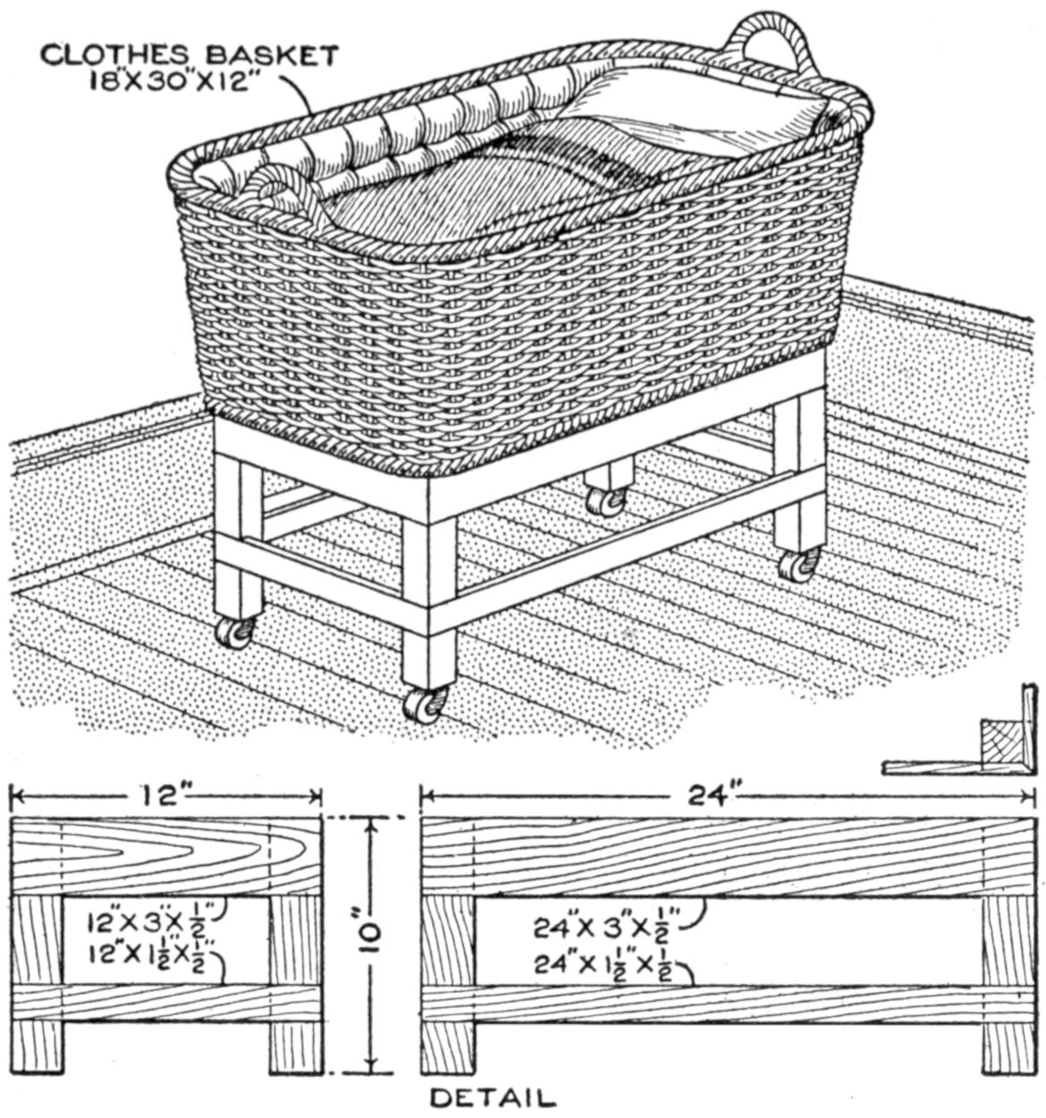 Assemble the parts as shown, using glue and screws where practicable, and properly set nails for places where the fastening will be exposed. All the stock should be cleaned up thoroughly both before and after assembling. Four pieces for the casters are fastened to the legs with screws. The edging for the top may be mitered, with a rounded corner, as shown in the detail, or butted square against the edge of the top, as indicated in the photograph and the plan of the top, the latter method being far easier.