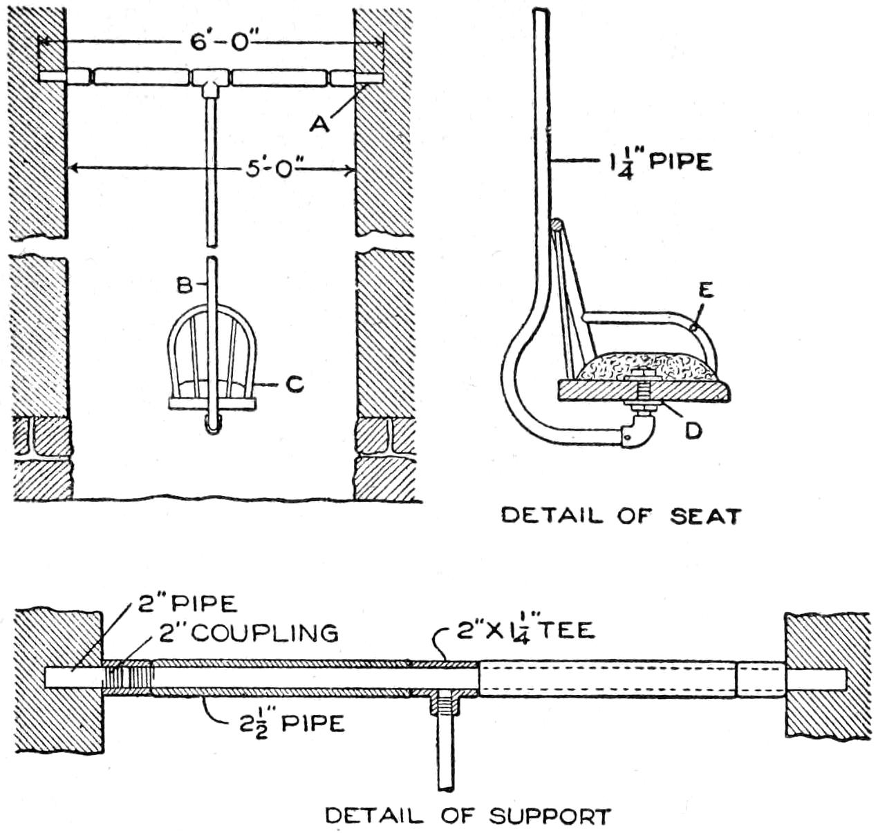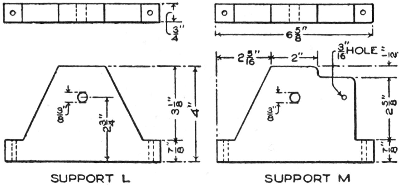 | The General Arrangement of the Parts is Shown in the Assembly Views, Figs. 1, 2, and 3. The Brake Detail, Fig. 4, should be Considered with Fig. 9, Shown Separately. The Detail Construction of the Frame and Body can be Readily Understood by Referring to the Assembly Views in Connection with Fig. 7 | DETAIL OF SUPPORT D | |