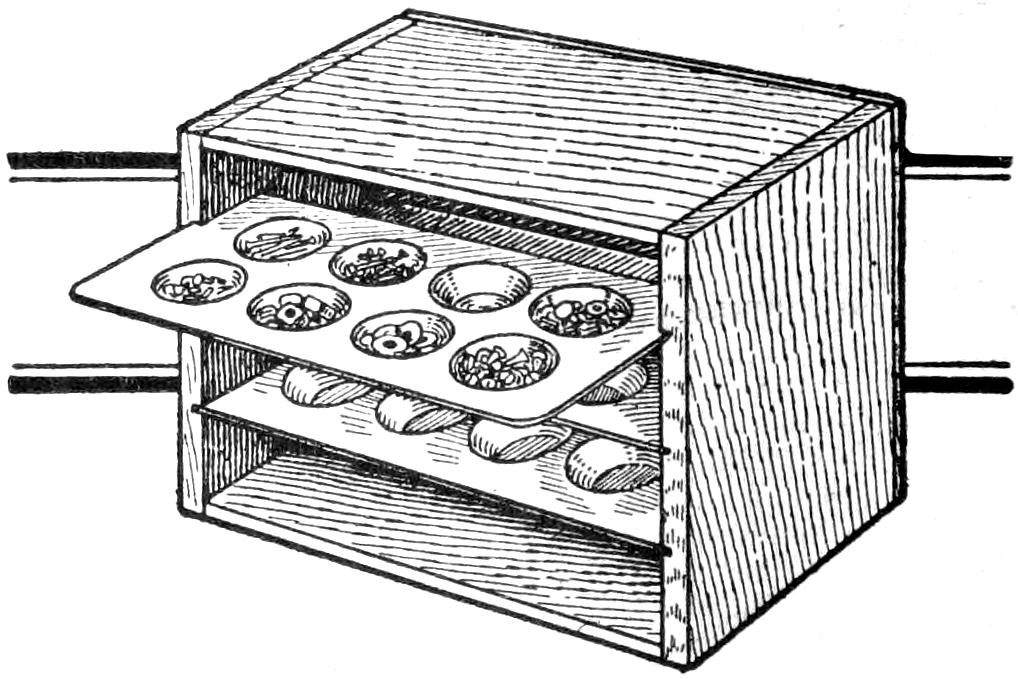 The boy who likes to play games in which the lead soldier and other features of imitation warfare have a part, can make his own lead soldiers, and other castings, by the use of a plaster-of-Paris mold. If he cannot undertake this work alone, the process is interesting for his older brother, or even for “daddy.” A mold of plaster of Paris, as shown in the illustration, is used for the casting box. The hollow impression of the soldier is filled with the molten lead, which is poured in through the sprue hole at the top. When the lead cools, the mold is opened, the casting removed, and the process repeated. An entire army can thus be made with a single mold.
