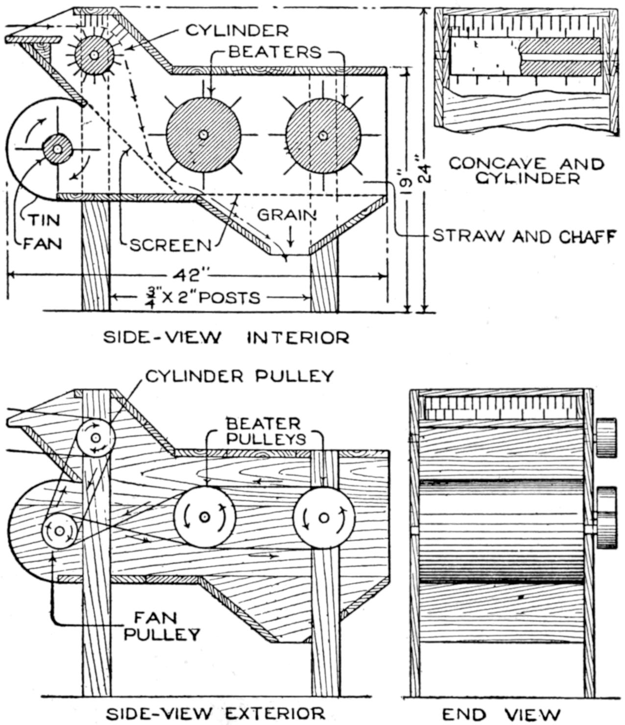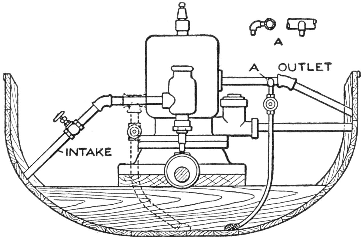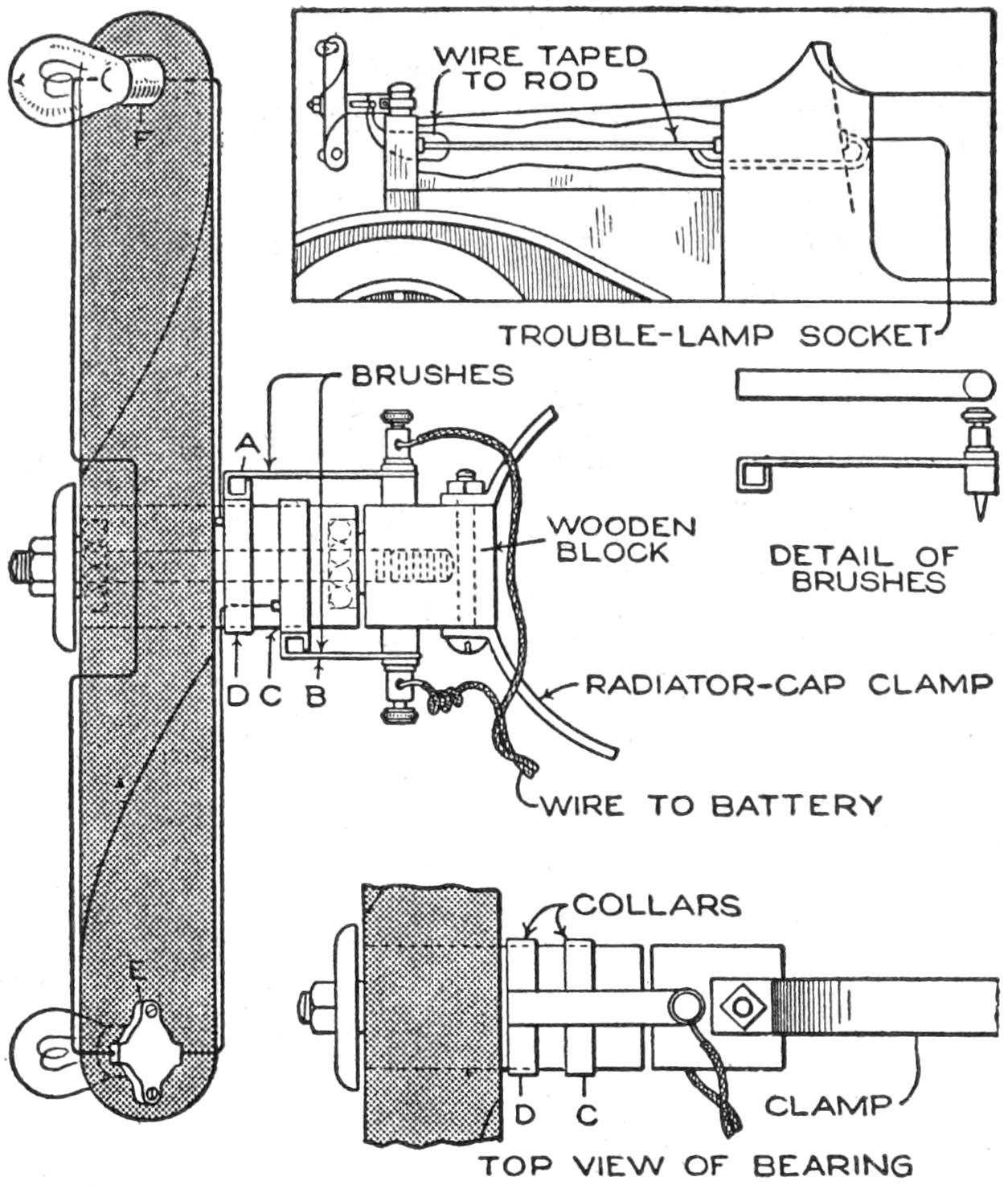 The engine is cooled by the draft through the wire-mesh opening in the front of the hood, and through the openings under the hood. If desirable, a wooden split pulley, with grooved rim and rope belt, may be fitted on the extension of the engine shaft, and connected with a two-blade metal fan, as shown in Fig. 2.