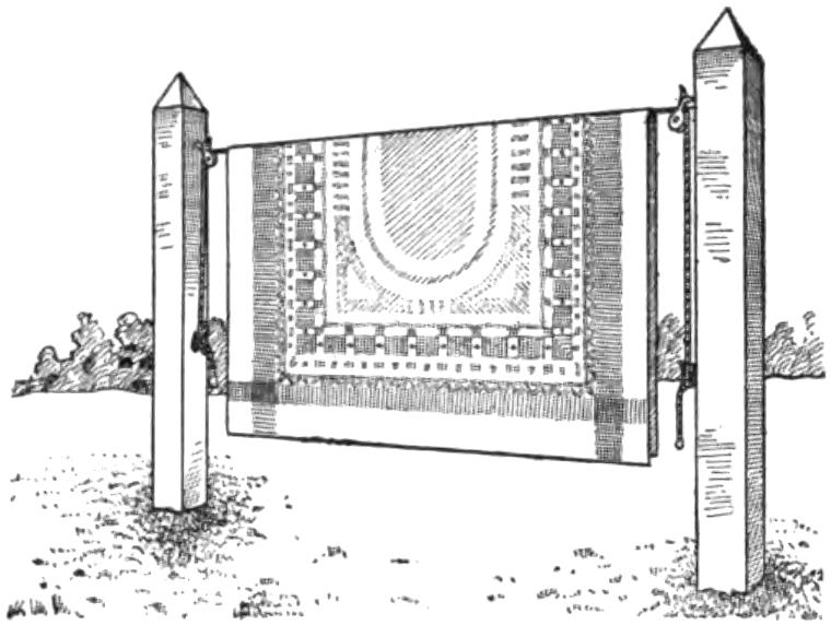 Needing a permanent sign to be mounted on an iron gate, I made one of metal, which is more durable and better-looking than most wooden or other common signs that the home mechanic can make. I used sheet metal and marked out the letters to cut them from the smallest possible strip, by reversing some of them. They were cut out with snips and chisels, and the edges filed smooth. The letters were then soldered to heavy wires, which were bolted to the gate by means of sheet-metal straps and bolts, as shown. The letters should be polished from time to time, especially if made from brass or copper.—Hugo Kretschmar, Brooklyn, N. Y.