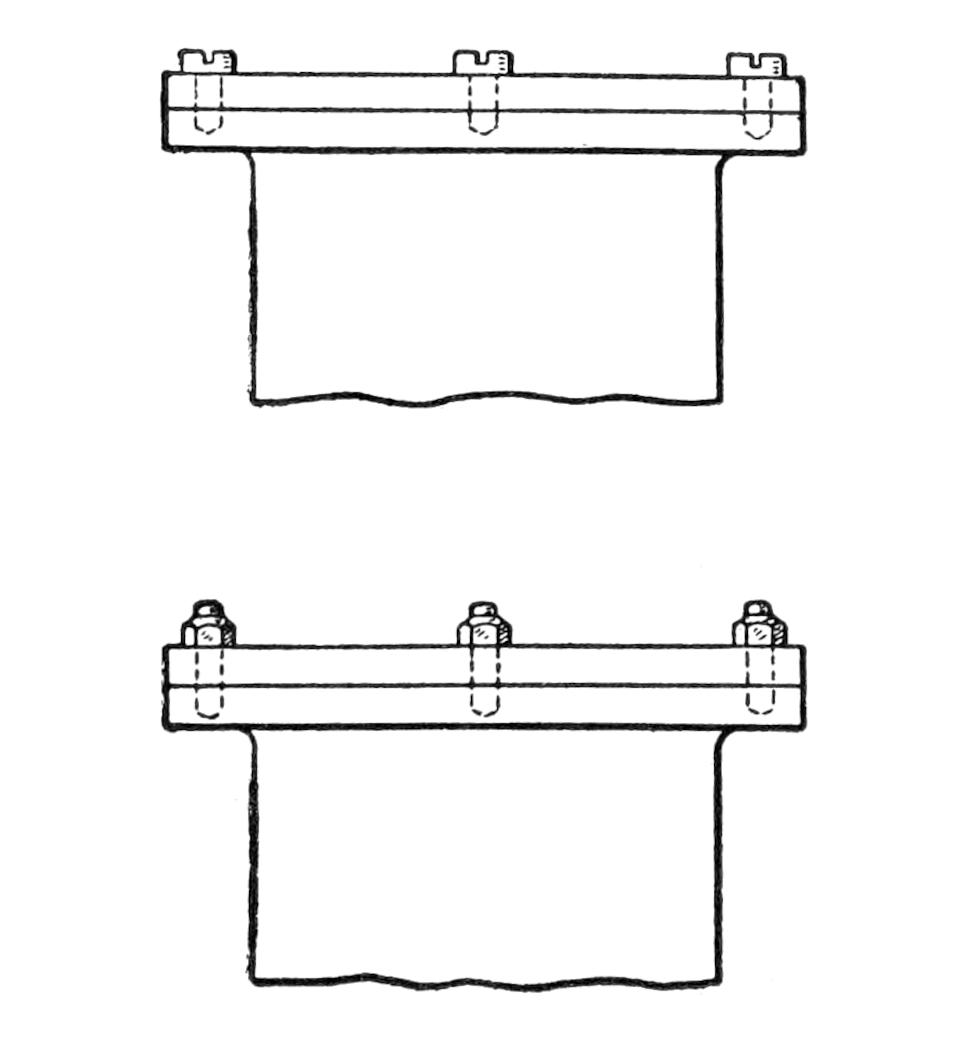 The side member of an automobile-truck frame was overstrained, and started to sag. To replace it with a new channel piece was out of the question, so it was decided to repair the trouble. A piece of ³⁄₁₆-in. plate steel was cut to the proper length, in a truss-shape, wider at the middle than at the ends, to carry the load properly. It was riveted to the strained member by means of ⁵⁄₁₆-in. round-head rivets, and prevented further sagging.