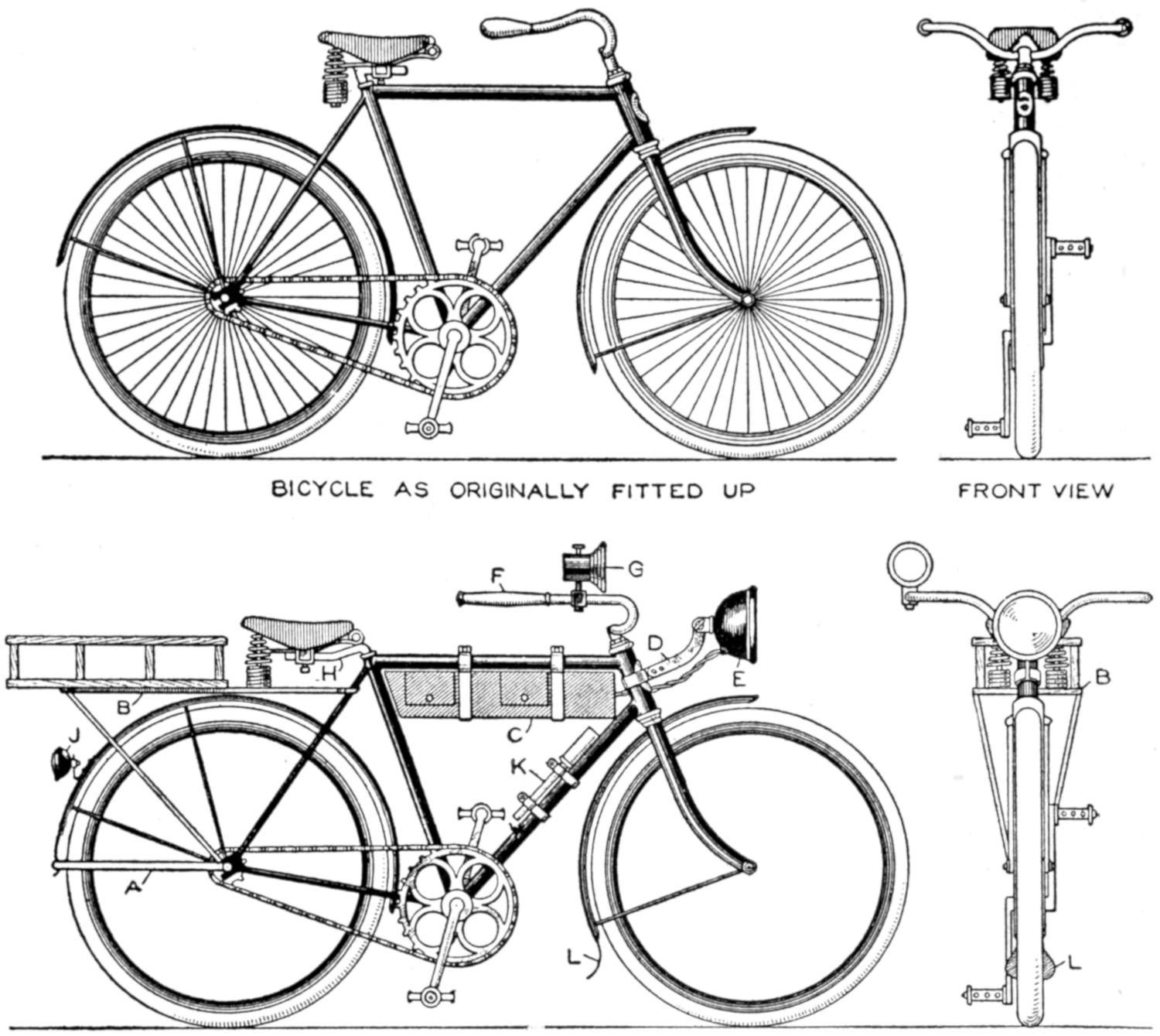 The Dynamo is Operated by a Belt Arrangement Connected to the Rear Wheel, and Supplies Light, and, if Desired, Operates a Horn