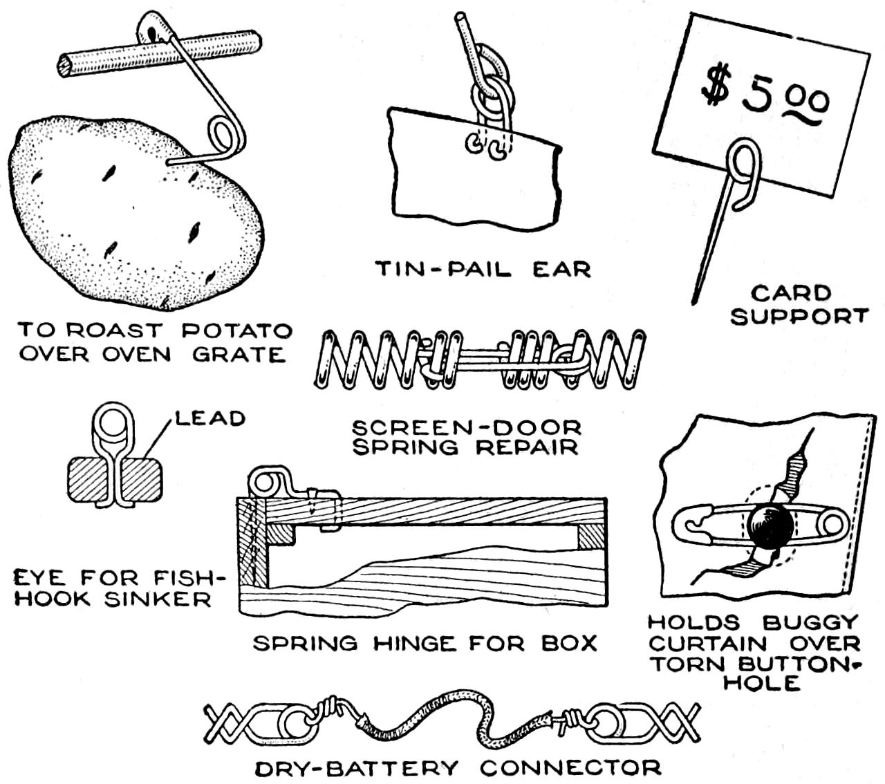 An ordinary pencil clip can be used to make a practical penholder by sliding it to the end of the pencil, as shown, and inserting the pen under it. The tension of the clip holds the pen firmly, and provides a serviceable holder, for emergency use, or even for permanent use, where a pen and pencil combined are desired.—Raymond B. Rogers, Portland, Ore.