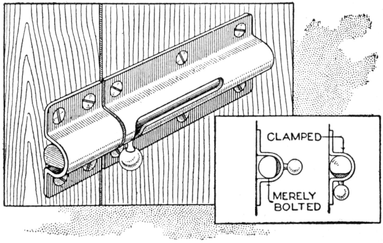A simple method of preventing a bolted door from rattling, by forcing it against the doorstop, or a weather strip, by means of an eccentric filed on the socket end of the bolt, is shown in the sketch. The bolt is fitted closely to the door and casing, and, when the bolt is turned so that the eccentric end is in action, the door is forced firmly against the doorstop.—C. H. Chambers, Schenectady, N. Y.