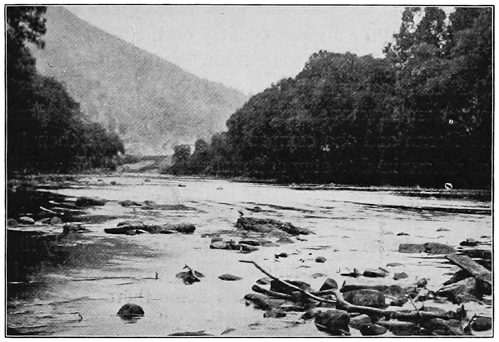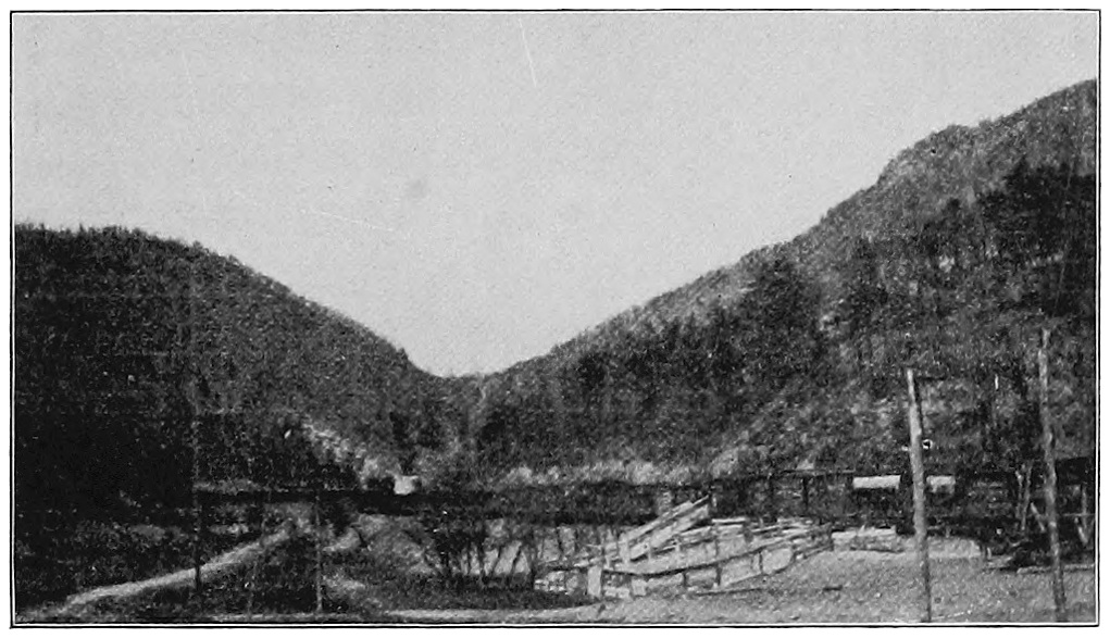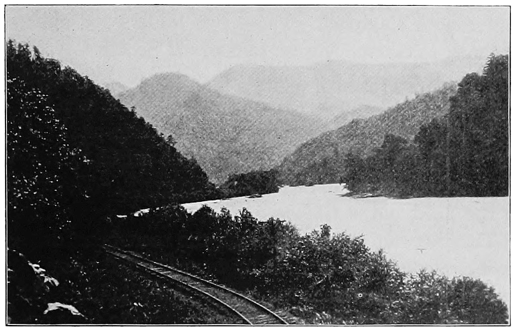 On the flat grounds just inside the gap is Middlesboro, a town of several thousand people, with wide streets and well-built shops and houses. Only a few miles away are coal mines from which thousands of tons of coal are dug, and this is one reason why the railroads are here. There are endless stores of fuel under these highlands, and men are breaking into the wilderness as fast as they can.
