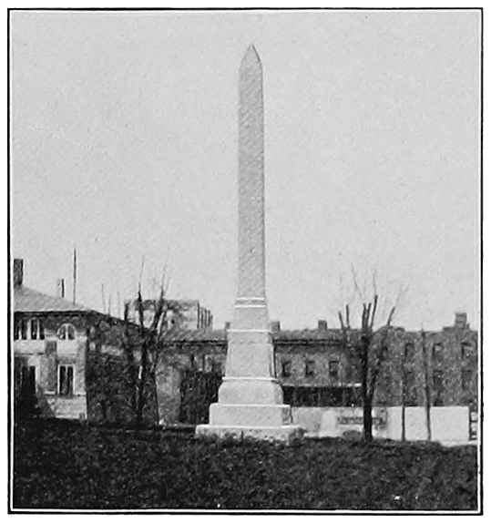 John Sevier, too, had more honors than those of a noble soldier. In front of the courthouse at Knoxville is a plain stone monument raised in his memory (Fig. 64), and down a side street is an old dwelling, said to be an early statehouse of the commonwealth which is still associated with his name. In 1785 the state of “Franklin” was organized and named in honor of the illustrious Benjamin; but North Carolina, being heartily opposed to the whole proceeding, put an end to it without delay. Sevier, as governor of the would-be state, was imprisoned, but escaped, to the delight of his own people, who were always loyal to him. They sent him to Congress in a few years and in 1796 made him the first governor of Tennessee. He enjoyed many honors until his death in 1815, which came soon after that of his more quiet friend, James Robertson. Both of these wilderness men had much to do with planting the American flag between the Appalachian mountains and the Mississippi river.