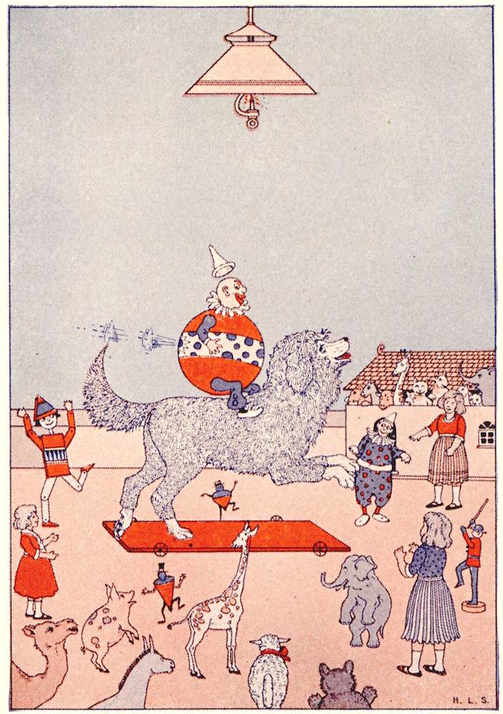 “Will you give me a ride on your back?” asked a little Rubber Clown, who had a whistle in his back that squeaked when you squeezed him.