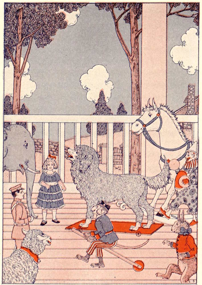 The invitations were sent out. Dorothy was to come with her Sawdust Doll and Dick with his White Rocking Horse. Sidney would bring his Calico Clown, Herbert his Monkey on a Stick, Madeline her Candy Rabbit, Arnold his Tin Soldier and Mirabell her Lamb on Wheels. There were to be other toys—the China Cat, the Stuffed Elephant and many more.