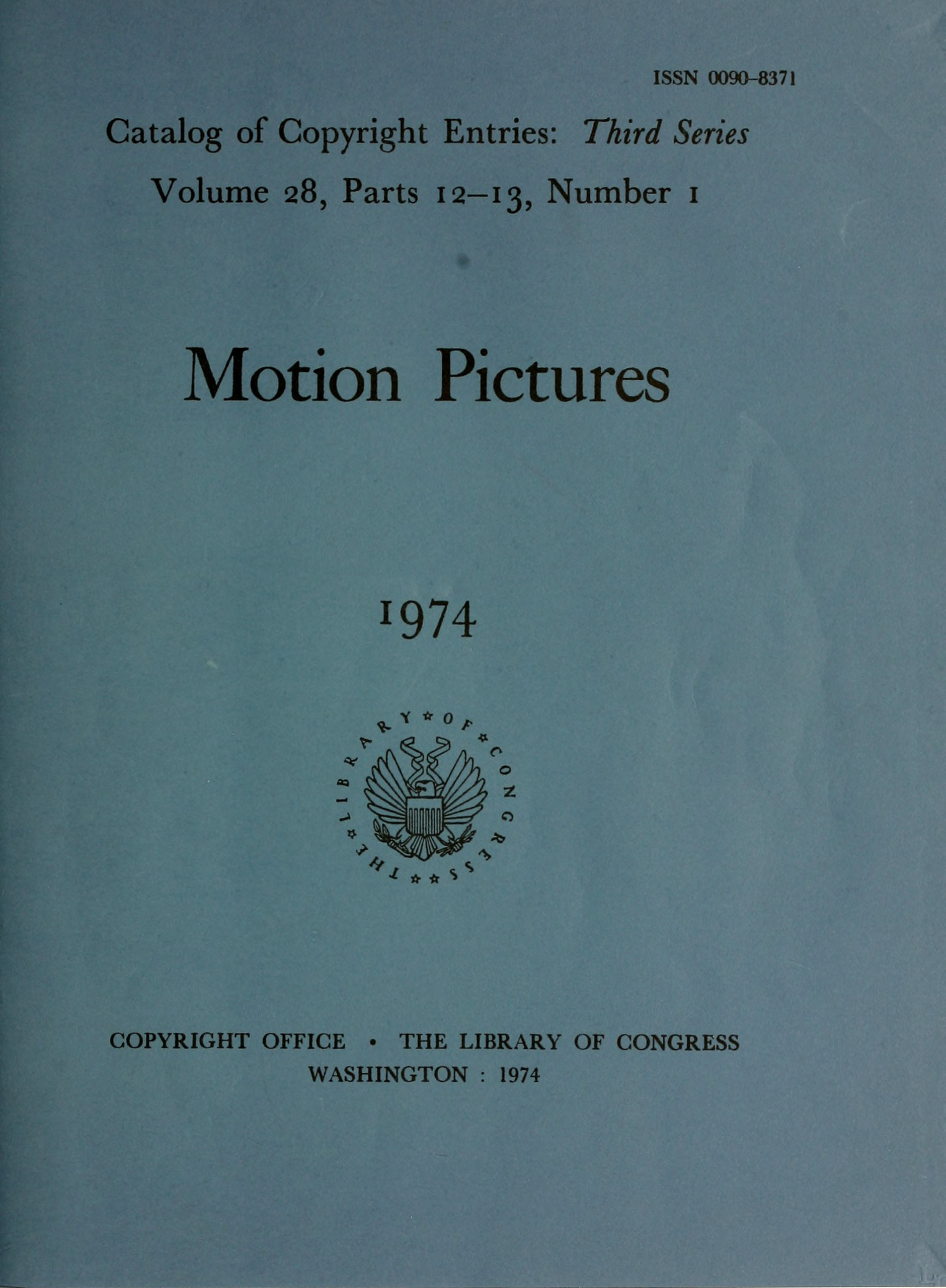 ISSN 0090–8371 Key title: Catalog of copyright entries. Third series. Parts 12–13. Motion pictures.