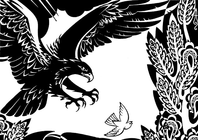 That sound was drowned in the cry of the eagles above who screeched like mad, slaying each other.