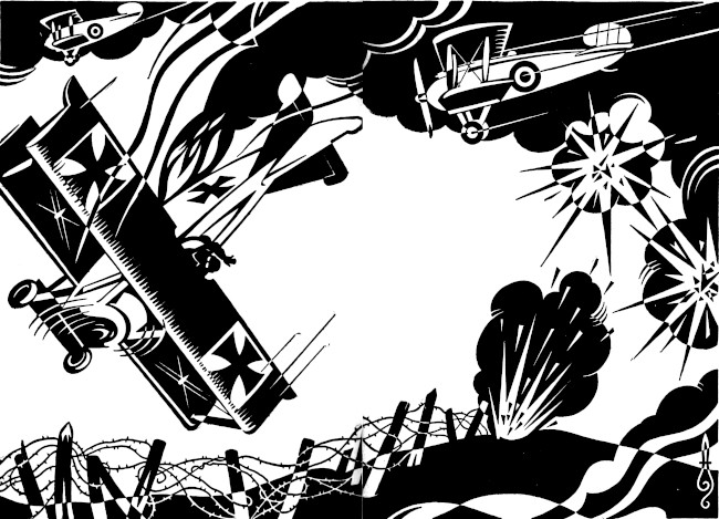 "At last, our own line came into view. I fled lower. The machine dived down too. I tried to tumble, but failed. My leg prevented me from trying any of my tricks. Then pa-pa-pat-pattut—my tail was hit and a shower of feathers fell below, obscuring for a moment the view of the men in the German trenches. So I shot down in a slanting flight towards our line and—passed it, making a circle. Then I beheld a strange sight—the aeroplane had been hit by our men. It swayed, lurched, and fell. But—it had done its worst ere it went down in flames—it had hit my right wing and broken it. It gave me satisfaction to see it catch fire in the air and fall, yet my own pain had increased so that I felt as if twenty buzzards were tearing me to pieces, but, thanks to the gods of my race, I lost consciousness of either pain or pleasure, and felt as if a mountainous weight were pulling me down....