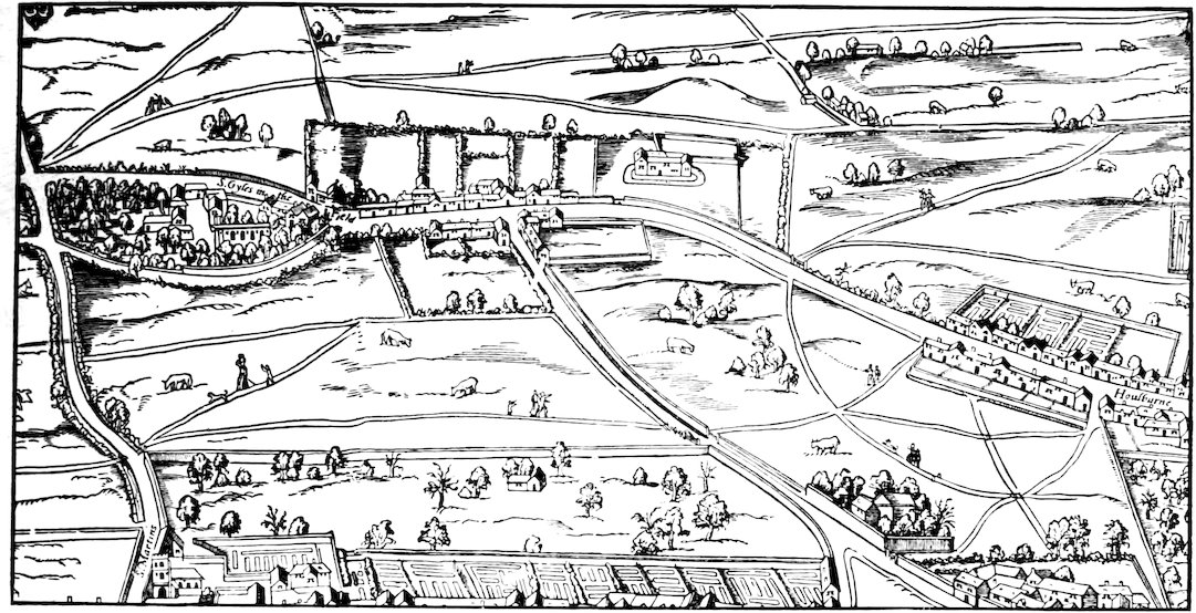 | 1. | Extract from Agas’s Civitas Londinum, showing the neighbourhood of St. Giles-in-the-Fields circ. 1560–70. | |