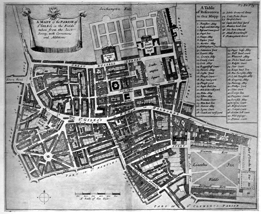 728. Partly in the Parish of St. Giles-in-the-Fields and partly in that of St. George, Bloomsbury.