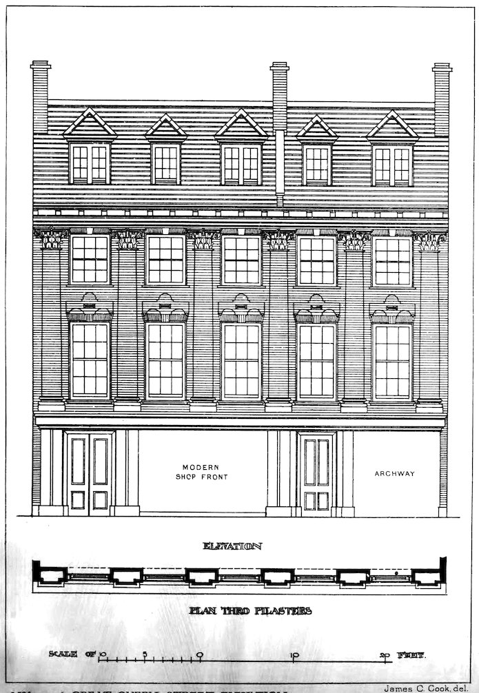 | 18. | Nos. 55 and 56, Great Queen Street, Elevation. Reproduced by kind permission of B. T. Batsford, Ltd., from Later Renaissance Architecture in England by John Belcher and Mervyn E. Macartney. | Measured Drawing by James C. Cook. |