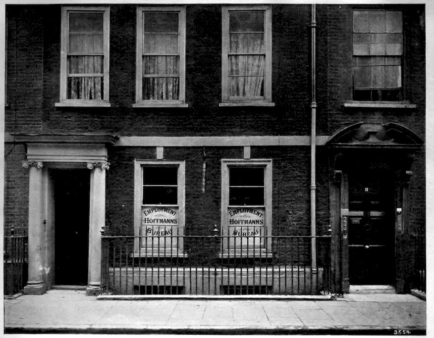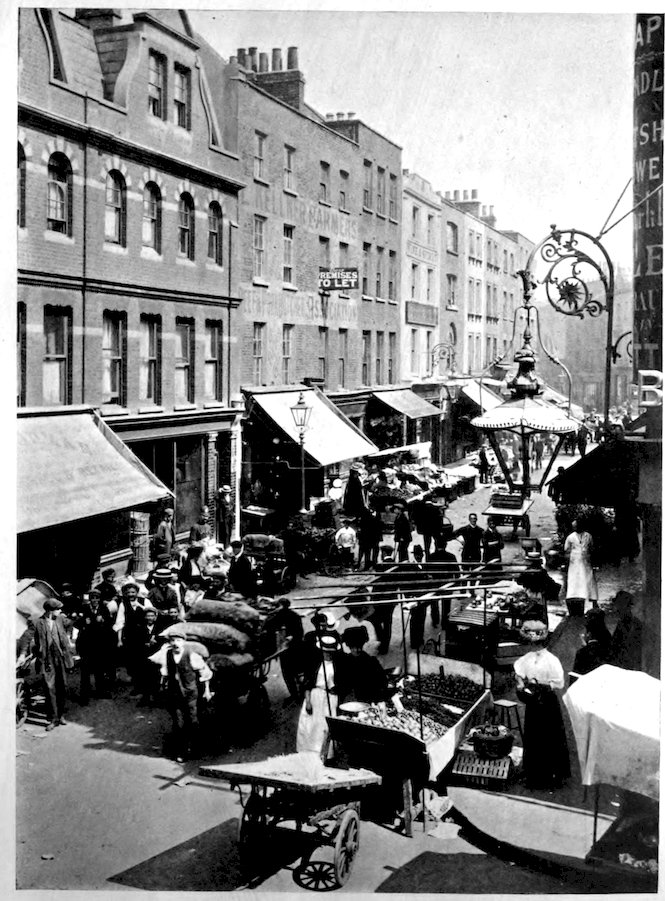 689. “The Rookery,” was a triangular space bounded by Bainbridge, George, and High Streets; it was one dense mass of houses, through which curved narrow tortuous lanes, from which again diverged close courts—one great mass, as if the houses had originally been one block of stone, eaten by slugs into numberless small chambers and connecting passages. The lanes were thronged with loiterers; and stagnant gutters, and piles of garbage and filth infested the air. In the windows, wisps of straw, old hats, and lumps of bed-tick or brown paper, alternated with shivered panes of broken glass, the walls were the colour of bleached soot, and doors fell from their hinges and worm-eaten posts. Many of the windows announced, “Lodgings at 3d. a night,” where the wild wanderers from town to town held their nightly revels.” (Timbs’ Curiosities of London (1867), p. 378.)