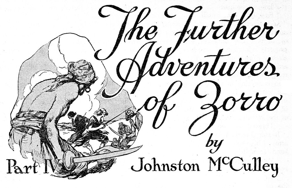 He had no faith in a personal encounter with Señor Zorro. Something seemed to tell him that such would result fatally for himself. And he had small faith in proving Zorro a traitor after the fight, and a great fear that Zorro and some of the captured pirates would, on the other hand, prove him to be one.