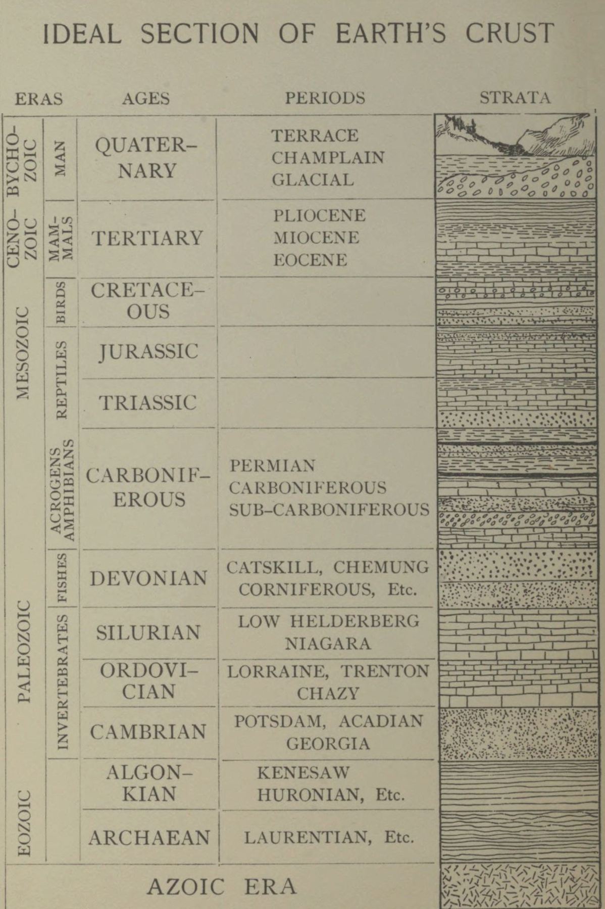 | BYCHOZOIC | MAN | QUATERNARY | TERRACE, CHAMPLAIN, GLACIAL | |
