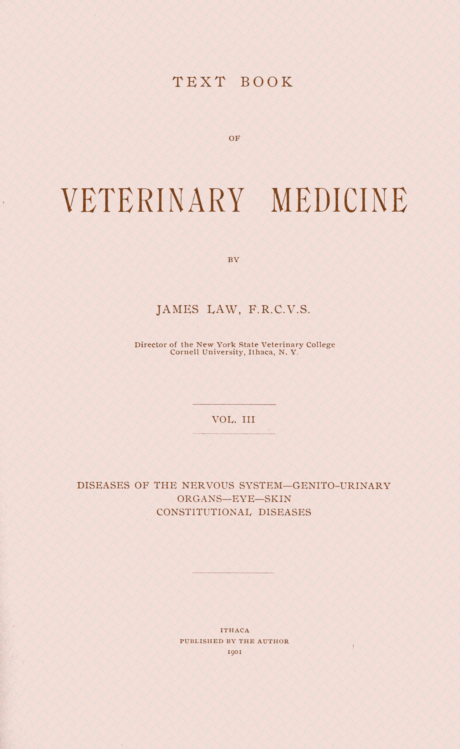 Nervous control of bodily functions: affected through disease of nerve centres or nerve trunks, sensory, motor, vaso-motor, etc. Modes of impaired nervous function: objective; subjective. Nervous characteristics in different breeds, individuals, sexes, castrated animals. Nervous disorder from microbian toxins, narcotics, nervous stimulants, etc.