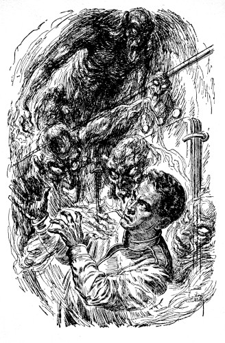 The door burst open. Four things, lacking any semblance of reason, advanced on him.