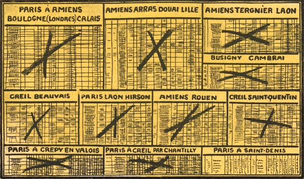Comme conséquence de la mise sous l’autorité militaire de la totalité des moyens de transport de tous les réseaux de chemins de fer et de leur affectation aux besoins militaires, les transports commerciaux sont suspendus jusqu’à nouvel ordre, tant pour les voyageurs que pour les marchandises de grande et de petite vitesse. Il n’est plus délivré de billets aux voyageurs civils. Il n’est plus reçu ni expédié de marchandises.