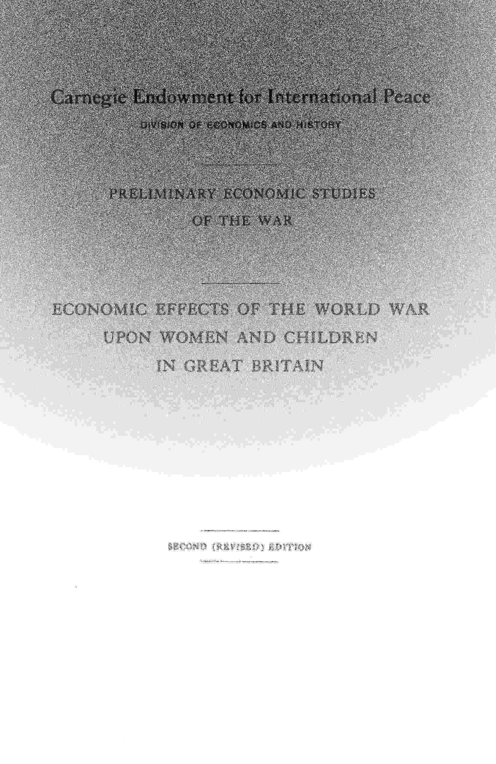 Preliminary Economic Studies of the War