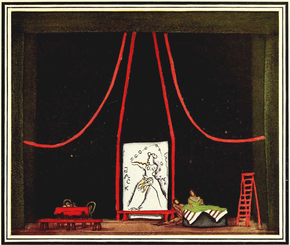 After light and a setting of bodies comes just as much of the ordinary plastic scenery of the stage as you need, and just as little as you can get along with. If you care to dig a bit under the ring, and install machinery that will lower the floor in sections, pile up hills in concentric circles or even lift a throne or a well or an altar into the middle of the circus while the lights are out—well, there is nothing to prevent you. Juliet’s balcony may hang above one of the entrances; or in the center of the stage throughout the whole action of Les Fourberies de Scapin may stand the tréteau or block, which Copeau makes the center of the action at the Vieux-Colombier. Scenically the problem of the Medrano is the most fascinating problem of the stage artist, the creation of a single permanent structure, large or small, which can stand throughout a play and give significant aid to the various scenes.