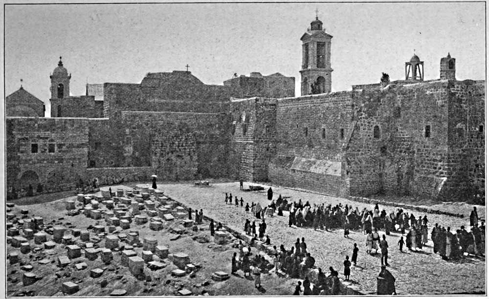 The Church of St. Mary in Bethlehem or, as it is more commonly called, the Church of the Nativity, was built about the year 330, during the reign of the Emperor Constantine; and, as we have already seen, a very ancient tradition ascribes its erection to the emperor’s mother, St. Helena. Through all the wars which have raged over Palestine and during which the city of Bethlehem has again and again been devastated and its houses and castles and monasteries overthrown, the old church alone has[Pg 158] escaped destruction. It is no wonder that its preservation has so often been ascribed to miraculous interventions. Although the building has been slightly altered and restored from time to time, its essential features have not been changed, and there can be little doubt that this is the oldest church in the world.