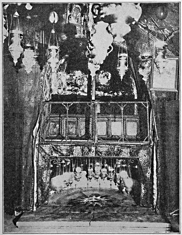 He needs to be brave; for when the Christmas season comes round, Bethlehem is thronged with worshippers of the Prince of Peace. They fill the church to overflowing. They rush down the narrow stairways that lead to the little cave, and there they crowd and curse and fight for a glimpse of the Silver Star; so that sometimes the air grows foul and the lamps burn even more dimly and women faint and strong men fall down and are trampled to death in the horrible confusion.