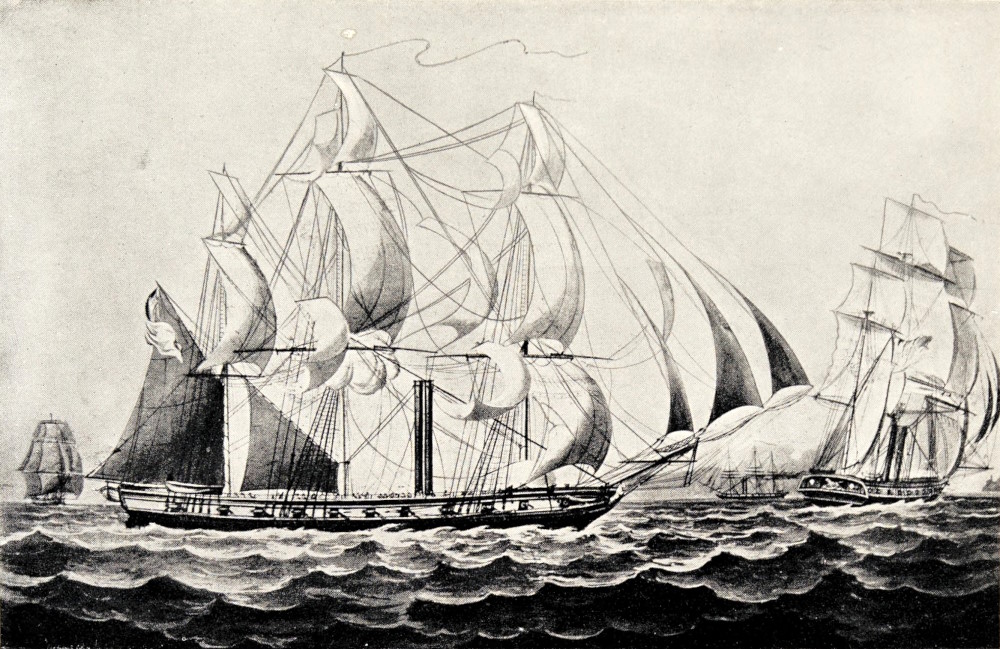 In the illustration THE TRIAL OF SCREW v PADDLE, the sloop Alert has been corrected to the sloop Alecto.