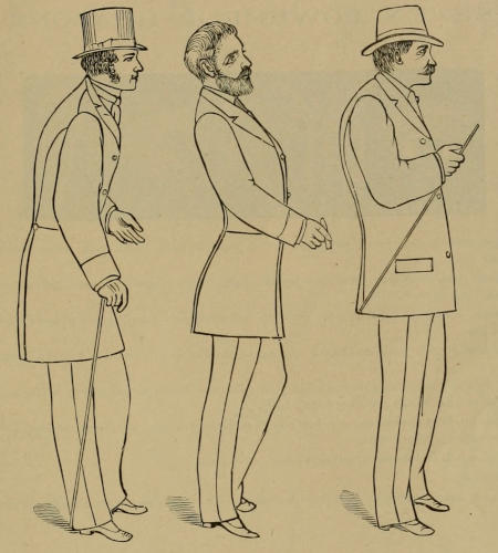 In regard to the taking of measures close or tight, the following must be observed: A person may be measured over the breast very close, like a stove pipe, and will not object to that pressure, for it lasts only a short time; but subject him to that pressure for five minutes and he will not endure it. He cannot endure it, and the pressure would be still more intolerable if the tape should be ten inches wide. It is very important for the cutter to know what he is measuring, and with what he is measuring. Old and experienced cutters have learned this at[7] much cost, therefore young cutters should be told this in the beginning. Young cutters should be instructed to always request their customers to remove their coats at the time of measuring, and take the breast and waist measure from behind, because the breadth of the two will not always agree.