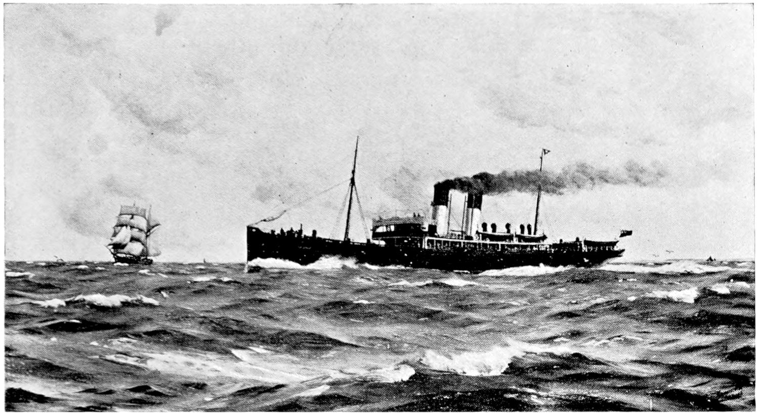 | From a painting by Charles Dixon; by kind permission of the Peninsular and Oriental Steam Navigation Co. | |||