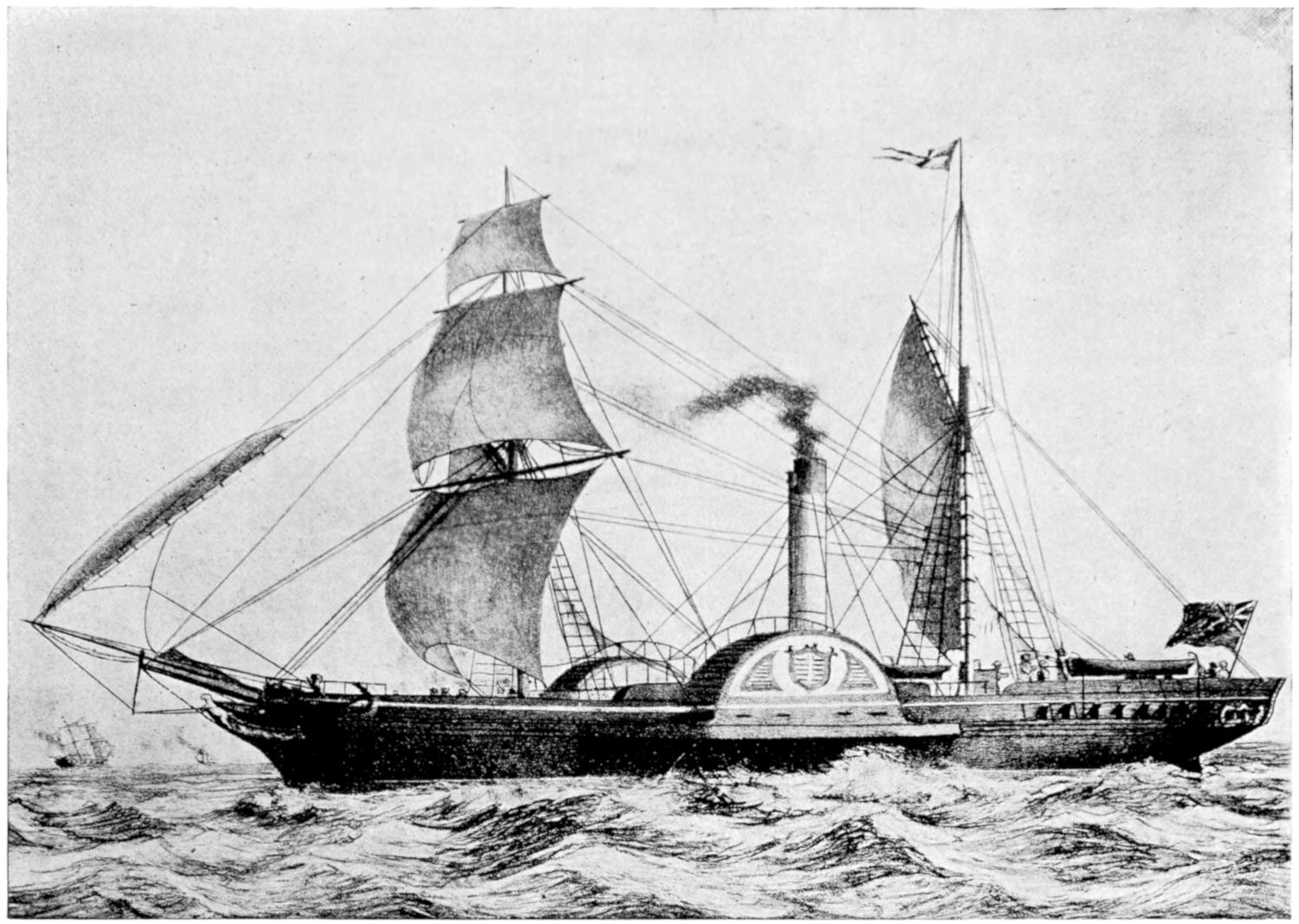 The absence of funnels and the presence of two large paddle-boxes made her one of the most extraordinary vessels ever seen. She made one slow journey across the Atlantic to Liverpool and back to America, and after another set of caloric engines had been tried in her with about as much success, in regard to her speed, as the first, she was fitted with engines of the ordinary type.