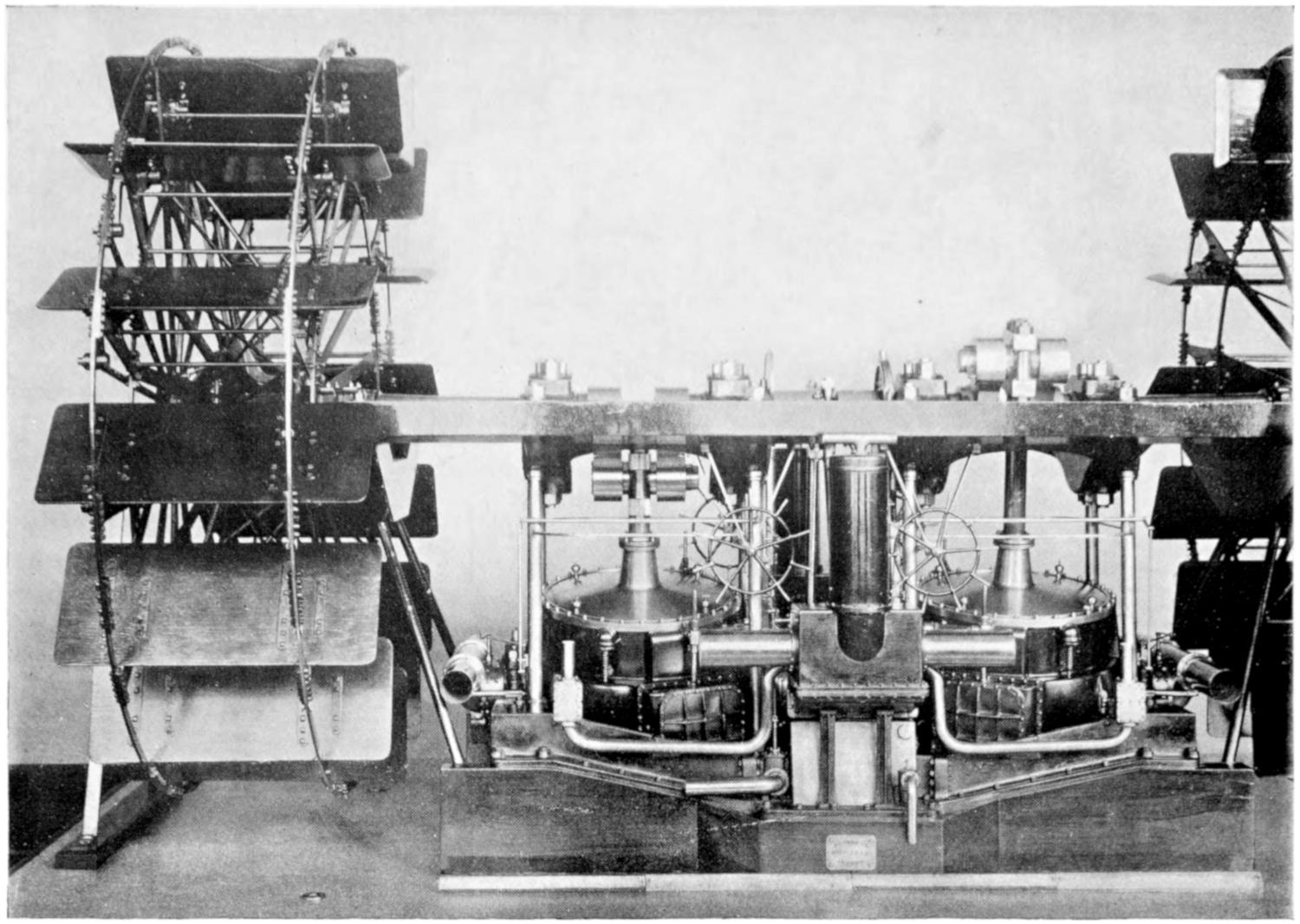 As private yacht-owning is a pastime in which only the wealthy can indulge, and as almost all private yachts are built to suit the fancy of their owner, a considerable individuality is displayed by them. They range in size from vessels not bigger than a ship’s boat to ocean-going liners. The Winchester, the latest boat of her class yet devised, is a triple-screw turbine yacht, bearing a strong resemblance to a torpedo boat. Her dimensions are: length 165 feet, breadth 15³⁄₄ feet, depth 9³⁄₄ feet, and displacement 180 tons. She was built in 1909 for Mr. W. P. Rouss, a prominent member of the New York Yacht Club, by Messrs. Yarrow and Co. of Scotstoun. The propelling machinery consists of three Parsons marine steam turbines constructed by Messrs. Yarrow. She has two Yarrow water-tube boilers, and her furnaces are fitted to burn oil fuel. The hull is of steel. At her trials at Skelmorlie she easily maintained a speed of 26³⁄₄ knots, which was ³⁄₄ of a knot in excess of the speed stipulated in her building[375] contract; and it was believed that a much higher rate could have been achieved, as 250 lb., the full working pressure of her boilers, was not reached, the high pressure of her high-power turbine being only 160 lb.