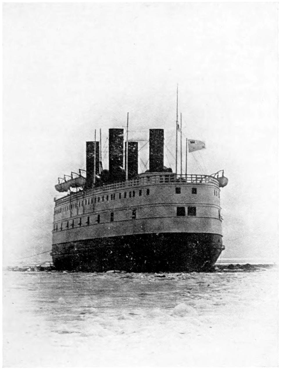 She finds no insuperable difficulty in smashing her way through ice 12 or 13 feet in thickness. The first piece of ice she ever attacked was drift ice about five feet thick, through which she went easily with her engines giving her little more than half-speed. The most serious test was against ice estimated at 25 feet thick, consisting[369] of 5 feet of field ice, 9 feet of pack ice above it, and ice 11 feet thick, and perhaps more, below the field ice. Thick snow on top of thick field ice forms the most serious obstacle, the snow forming an immense cushion or ridge which becomes worse the more an effort is made to get through it. On another occasion she made her way by ramming through ice 34 feet in thickness. Another experience was to rescue eight of nine steamers which were nipped in the ice; the ninth was so badly squeezed by the ice that she sank before the Ermack could force her way to her.