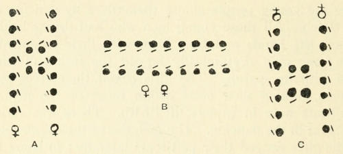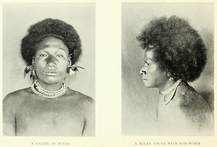 | Mabuiag revisited—Character of the island—Comparison between the Murray Island and Mabuiag natives—Barter for skulls—Economic condition of Mabuiag—Present of food—Waria, a literary Papuan—Death of Waria’s baby—Method of collecting relationships and genealogies—Colour-blindness—The Mabuiag language—A May Meeting followed by a war-dance | Page 117-131 |